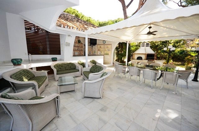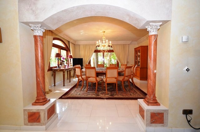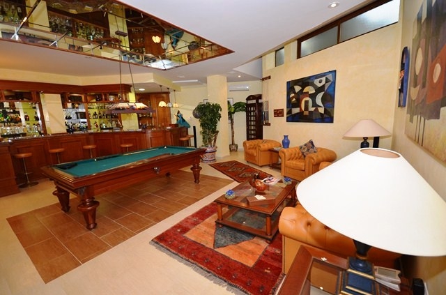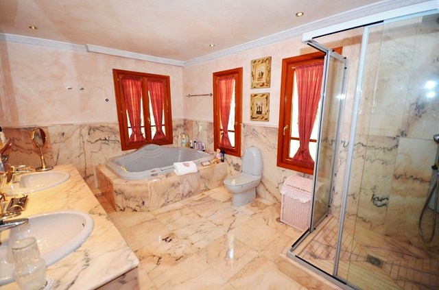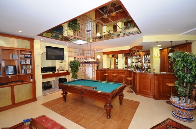 caractéristiques Air conditionné froid/chaud, Système d´alarme, Salle a manger, Cuisine meublée, armoires encastrées, Salle de jeux, garage, Jardin, Gymnase, Salon avec cheminée, zone prestigieuse, zone tranquille, sauna, piscine, bain turc, plusieurs terrasses, Courte distance de la plage, a distance de marche des resta.