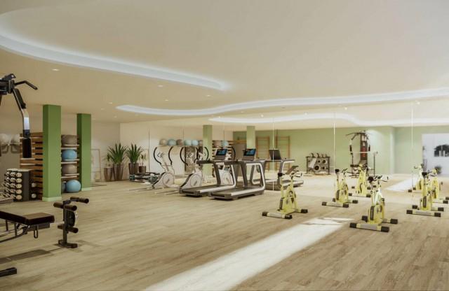 caractéristiques Air conditionné froid/chaud, Fenêtres en aluminium, Salle de gym commun, Style contemporain, parfait pour golfeurs, Fenêtres à double vitrage, Salle de bain suite, Cuisine meublée, salle de bain équippée, Piscine couverte et climatisée, Vue sur les montagnes, parking, Vue mer, en construction.