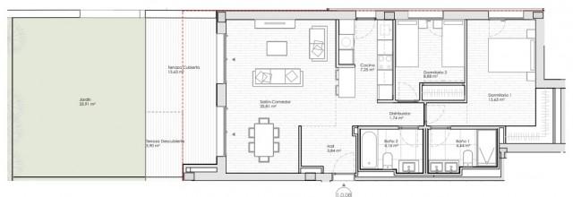 Appartement, non meublé, cuisine équipée, Underground parking, piscine communautaire, Jardin: Privé et commun, Orientation: Sud-ouest