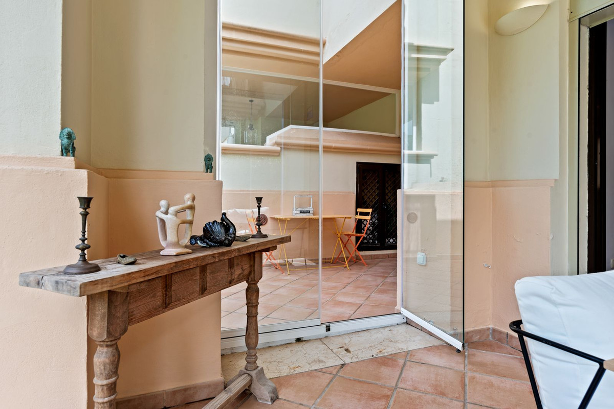 This Two Bedroom Corner Garden Apartment has a great private terrace with glass curtains, while a private garden offers you a tranquil oasis for relaxation.  Urb. Pueblo del Rio is nestled on the banks of the Rio Real and surrounded by the majestic Sierra Blanca mountain peaks, is renowned as one of the most picturesque urbanizations in Marbella. Only seconds to one of the best beaches on the coast and minutes from the main city centre of Marbella and shopping center La Cañada.