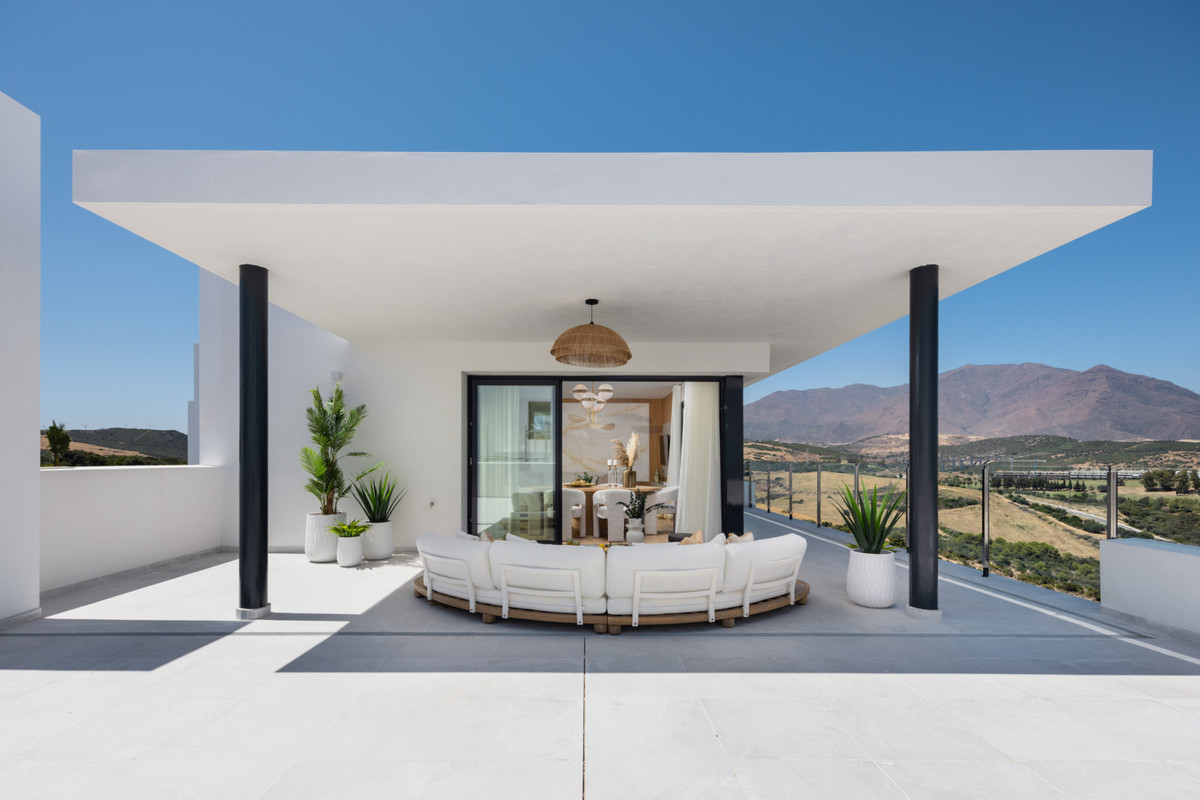 This development stands on a hill, in what is considered the “Best Golf Resort in Europe” (according to the prestigious golfing website, Leading Courses): Finca Cortesín. With stunning views of the sea, Sierra Bermeja and Estepona Bay, this development houses a total of 51 apartments and penthouses with 2 and 3 bedrooms, spread over 6 modern-style blocks.