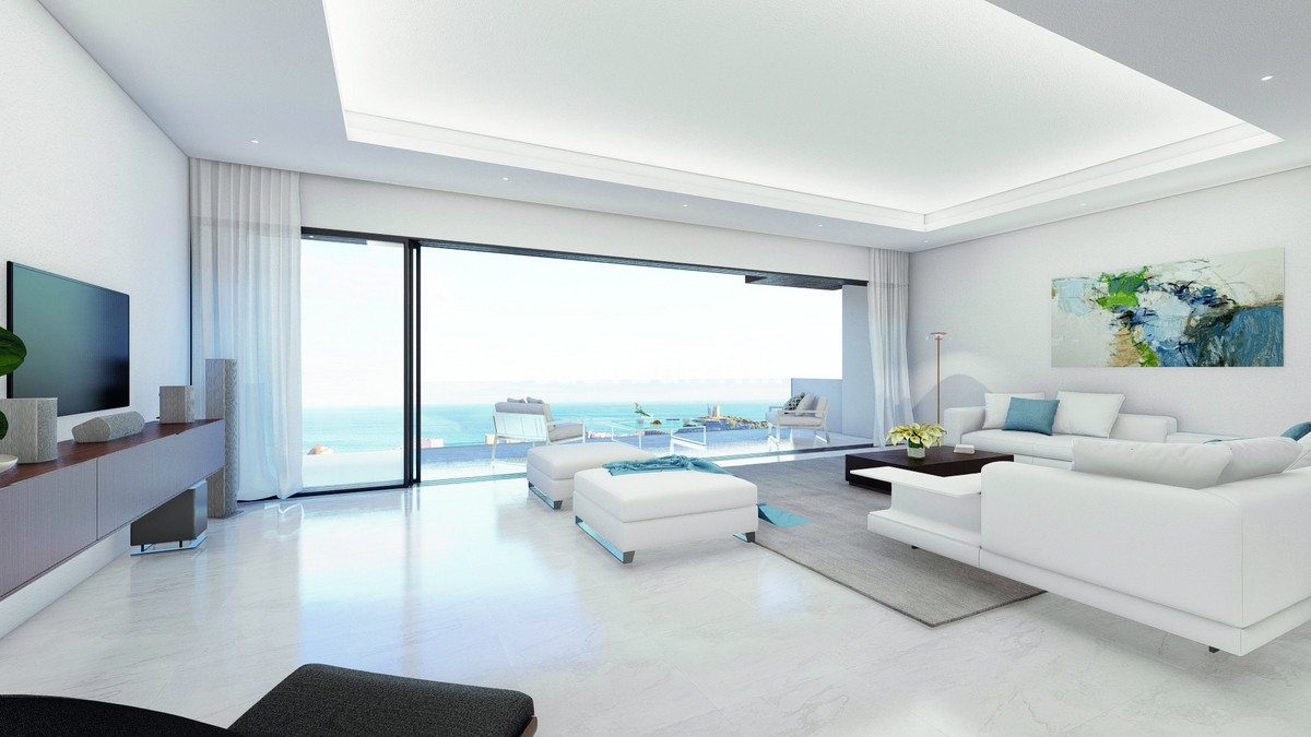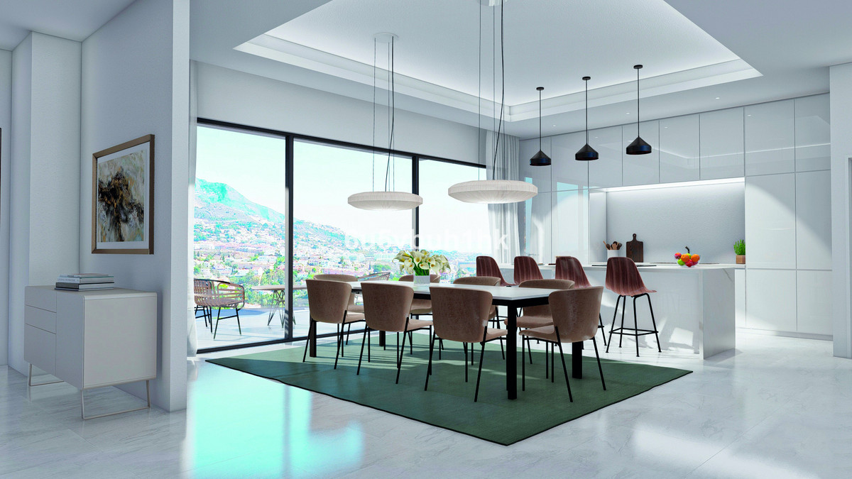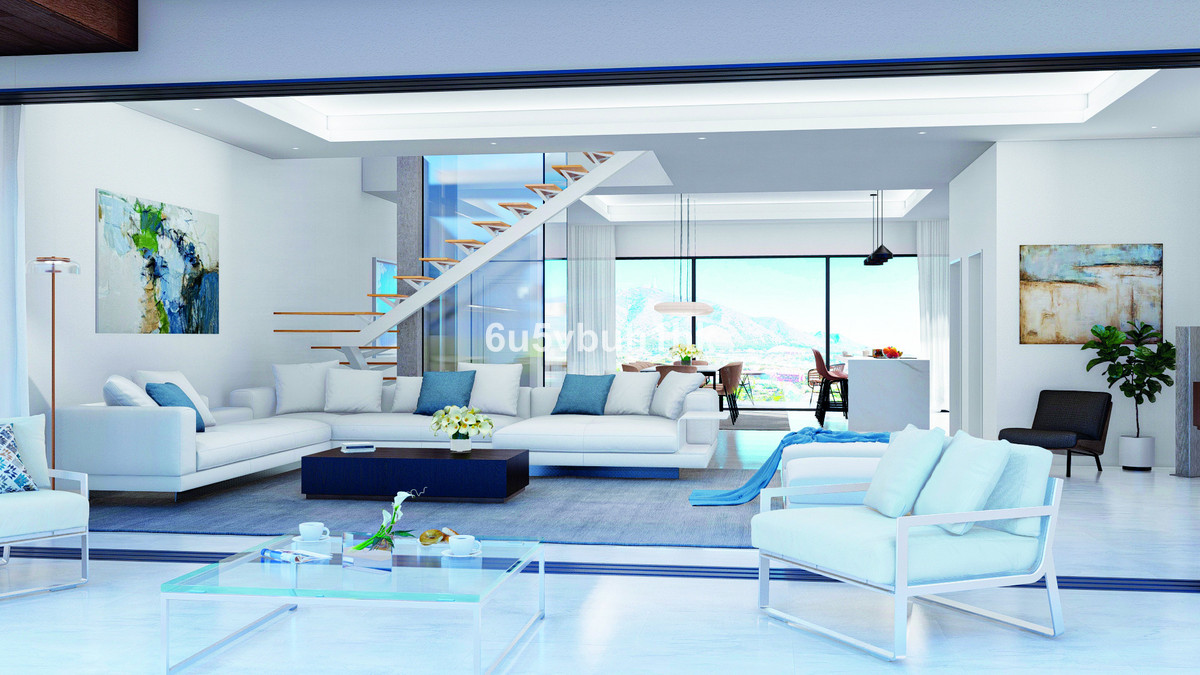 The villa have several spacious terraces, an overflow swimming pool, parking spaces for two cars and a luxurious rooftop terrace with outdoor kitchen, offering stunning views over Fuengirola and the Mediterranean Sea. It is designed to work as a whole with luxurious solutions, taking into account the times of day and sunlight. The villa is equipped with a lift, making it ideal for people with reduced mobility.