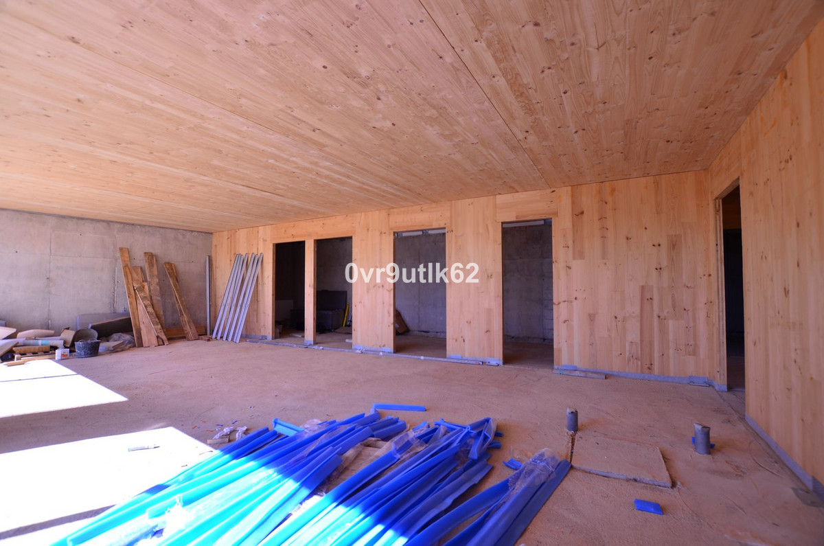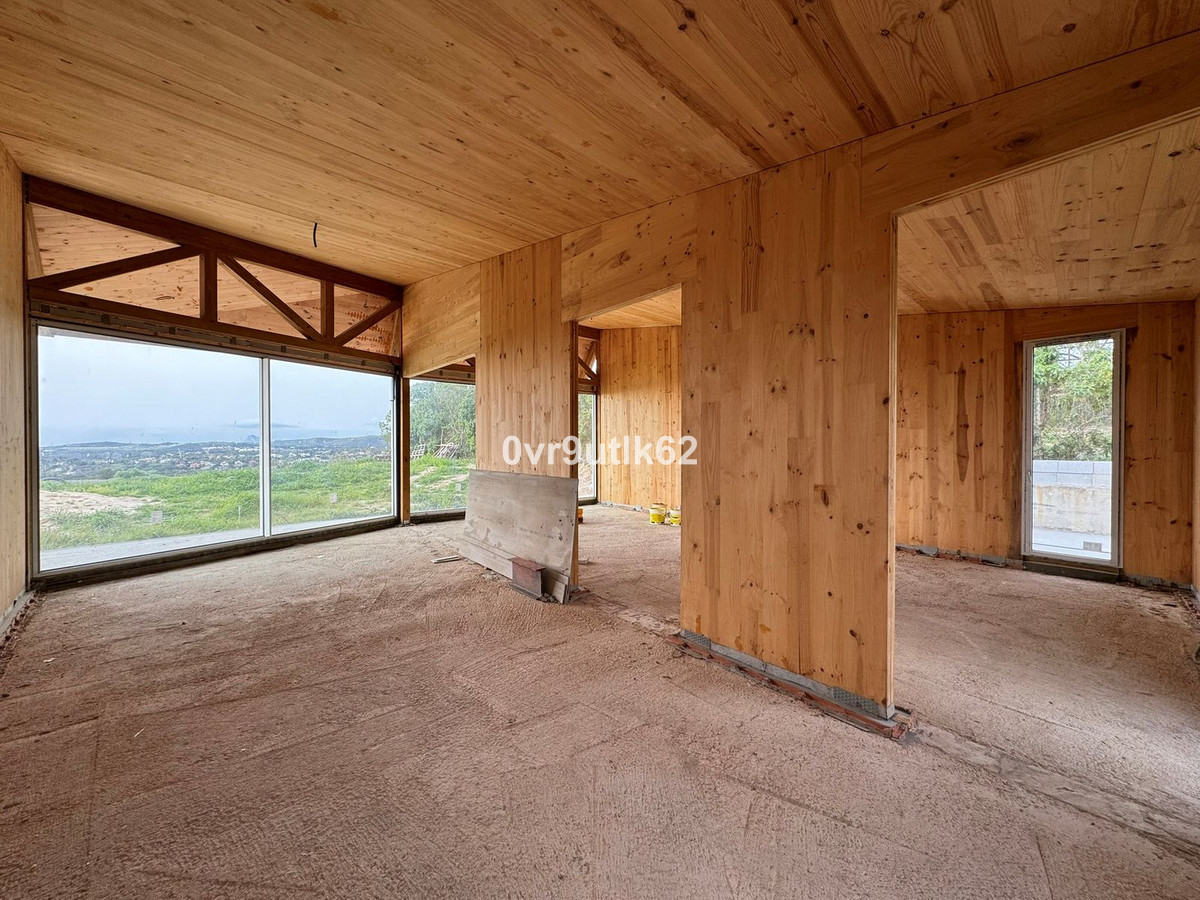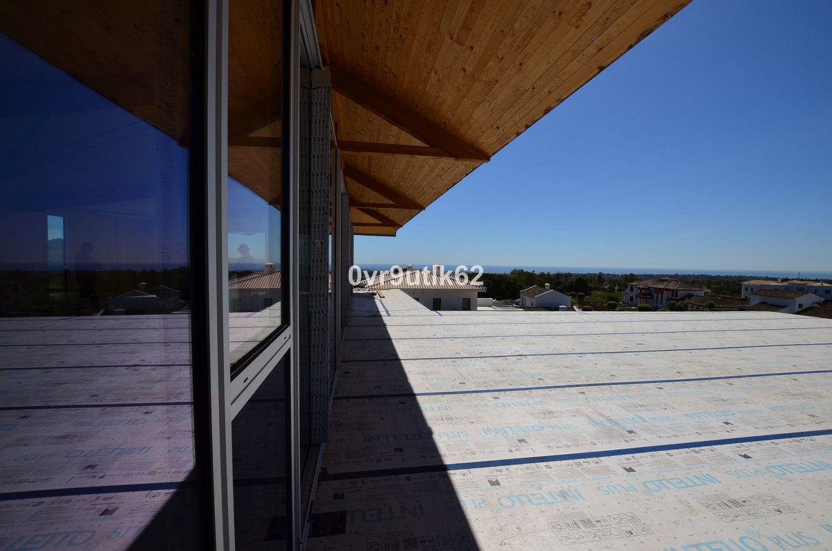 Presenting an exclusive under-construction villa enveloped by captivating sea views in the prestigious La Reserva zone in Sotogrande. This remarkable property showcases eco-conscious luxury, nestled among verdant landscapes with a sleek, modern design. Created to blend environmental sustainability with sophistication, every detail has been carefully crafted to reduce its environmental impact without sacrificing style. At the villa’s heart is a spacious, open-plan living area featuring floor-to-ceiling glass walls that offer sweeping views of the coast, with vistas extending to the African coastline, Gibraltar, and La Reserva golf course. Perched in the hills, this architectural masterpiece integrates seamlessly with its natural surroundings. Built with sustainable, durable materials like CLT wood, known for its strength and earthquake resistance, the villa combines eco-friendliness with a cozy, rustic aesthetic. Situated within a gated, 24/7-secured community, the property sits on a peaceful cul-de-sac, a short drive from Sotogrande International School and close to renowned golf clubs like La Reserva and Valderrama. Additionally, Sotogrande port and nearby beaches are only a quick 10-minute drive away. Inside Villa Verde, sunlight pours through energy-efficient, floor-to-ceiling windows and strategically placed skylights, blending the indoors with the natural beauty outside. The open layout fosters a fluid connection between living spaces, emphasizing spaciousness and a harmonious relationship with the surrounding landscape. Villa Verde’s eco-friendly approach is evident in its thoughtful design. Passive cooling is enabled by natural ventilation through strategically positioned windows and adjustable louvers, minimizing the need for air conditioning. Insulation made from recycled materials ensures year-round temperature stability, while energy-efficient appliances further reduce energy use. Stepping onto the expansive terrace, a serene oasis awaits. A large infinity pool invites you for a refreshing swim while enjoying the endless ocean view.
