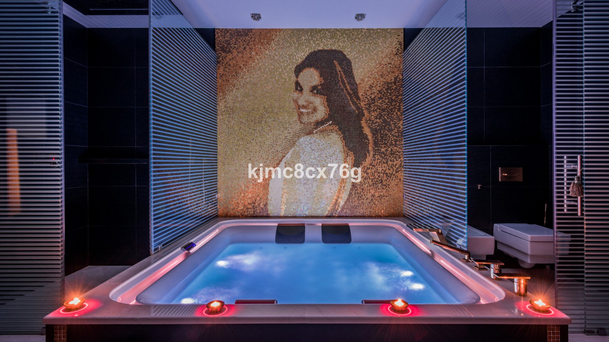 By entering the Villa the ground floor opens to a spacious living room with fire place, a dining room, an office, a guest toilet and a fully equipped kitchen. The lower area of the villa offers a hammam bath, sauna, laundry area, guest toilet and 2 separate guest or staff apartments. The top floor has 5 bedrooms en suite with direct access to large terraces with fantastic sea and mountain views. Extra features: Domotic control villa, heated pool, Automatic irrigation system, Satellite tv, plenty full of storage space, garden lights.