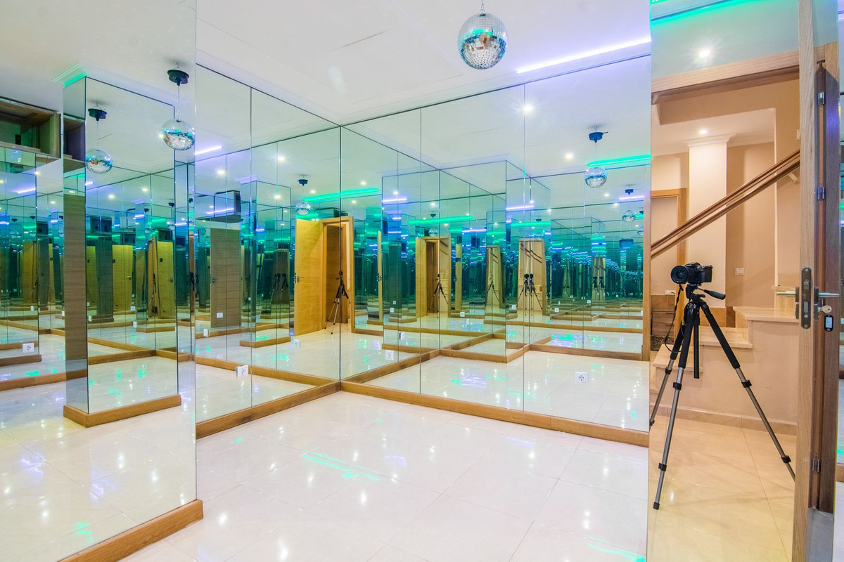 Built over 3 floors with lift, the ground floor has garage with car parking for at least 2 cars, leading to large utility areas with a home cinema, wine cellar and games room, three bedrooms with separate beautifully equipped bathrooms, marble steps up to the very large and grand open plan living & dining area, kitchen with top quality appliances, granite worktop, a further bedroom and separate bathroom. Up the imposing and feature centre staircase to the first floor, master bedrooms with en-suite luxurious bathrooms. Finally onto the roof terrace where there is ample room for a hot tub to be fitted. Hot & cold air-conditioning, partial under floor heating, alarm system.