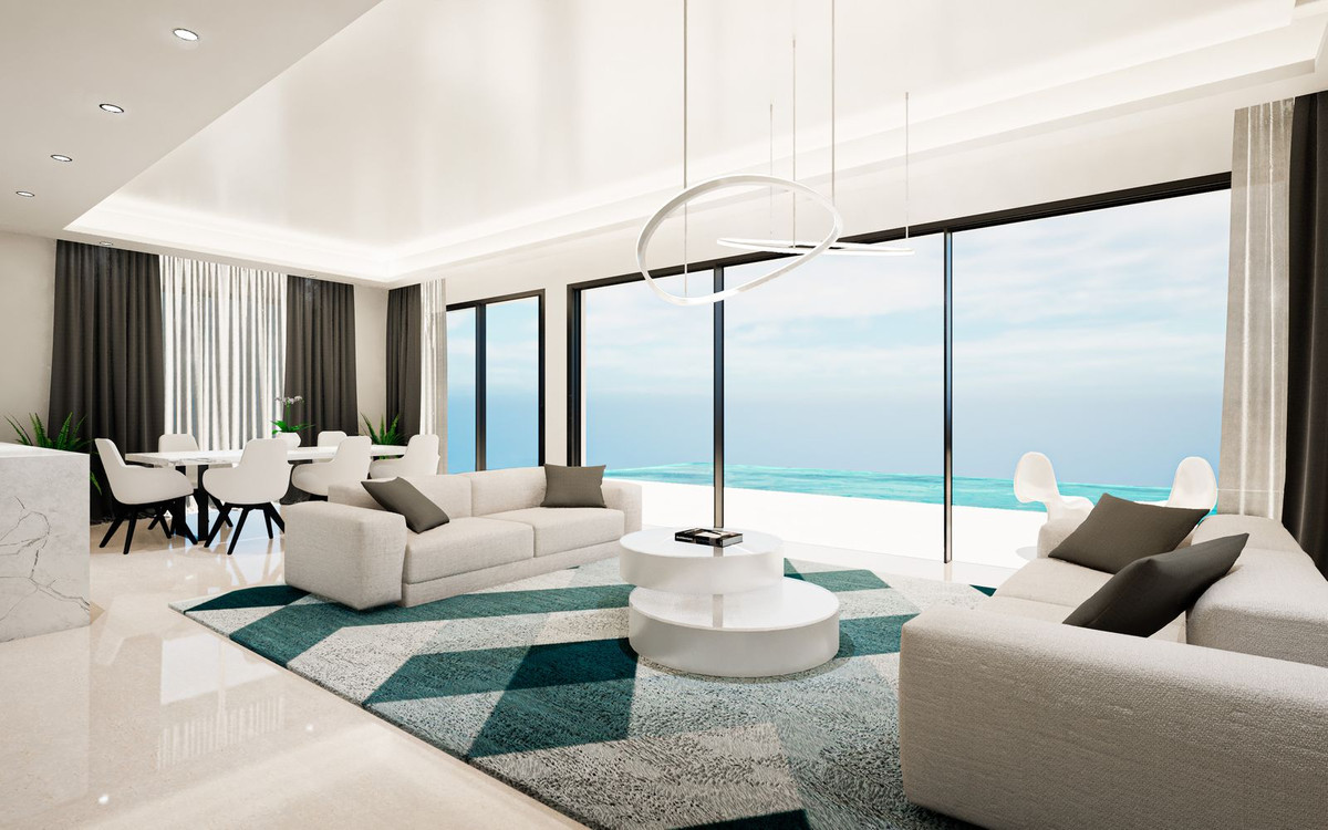 A magnificent living room area has been designed to fully enjoy and contemplate the beautiful views that Costa del Sol has to offer.