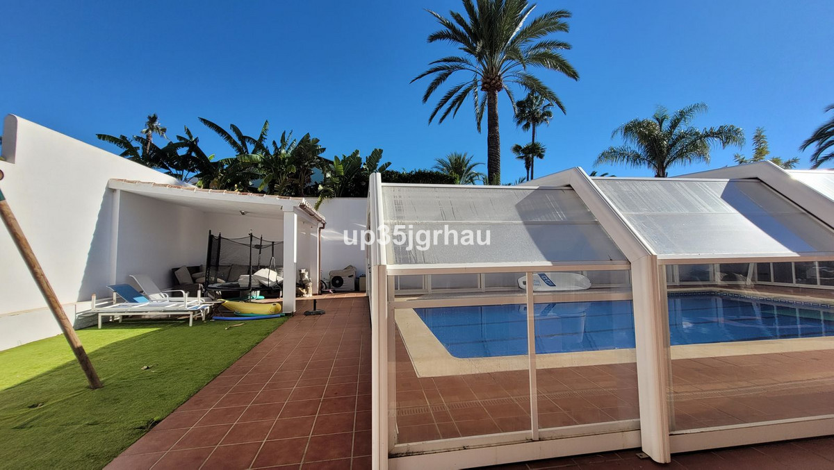 Villa located in the prestigious villa area of Bel Air, 1 minute from the commercial area with supermarkets, restaurants and the highway, 5 minutes from the beach, between Estepona and San Pedro, we find this family property solidly built but at the same time with a lot of charm. On a plot of approximately 1150 m2, with a pleasant 50 m2 pool (covered in winter), barbecue area and plenty of outdoor space to enjoy the excellent climate we have on the Costa del Sol.