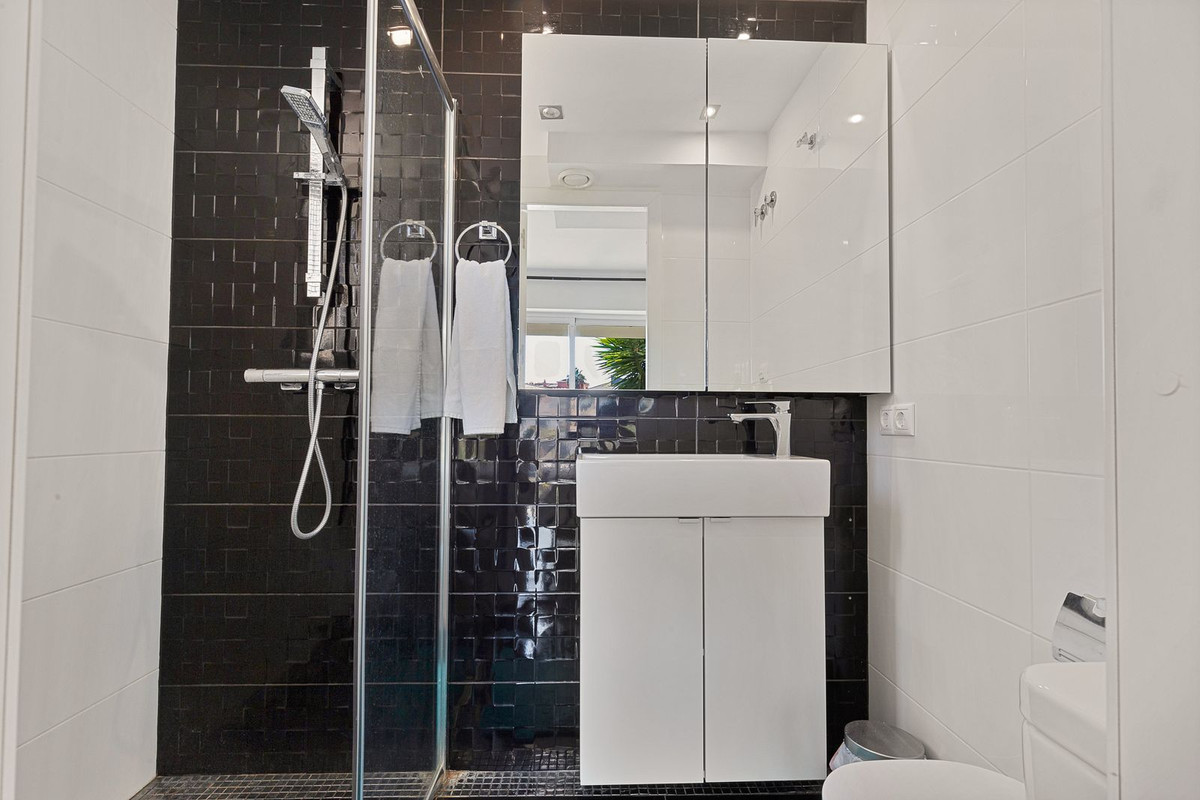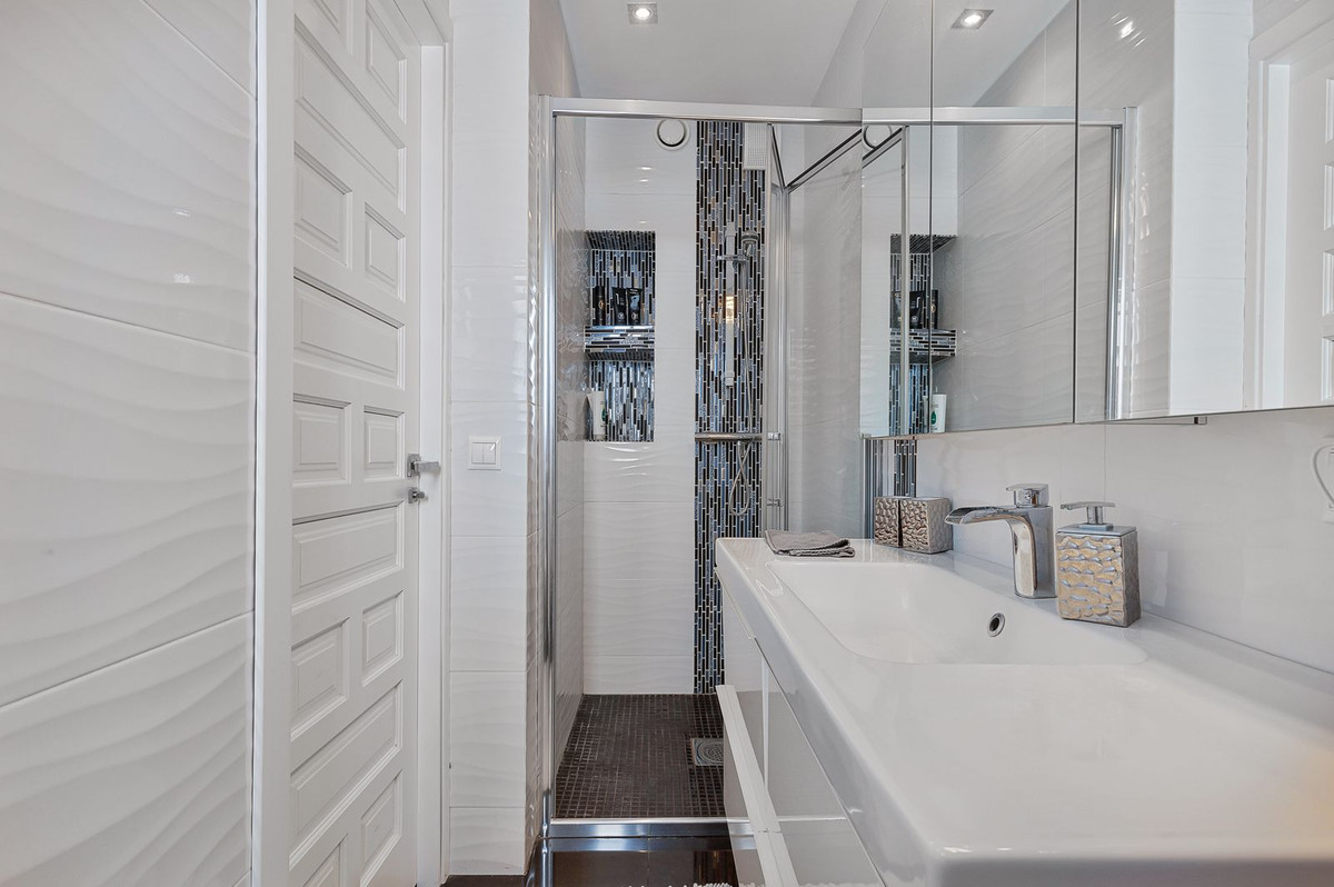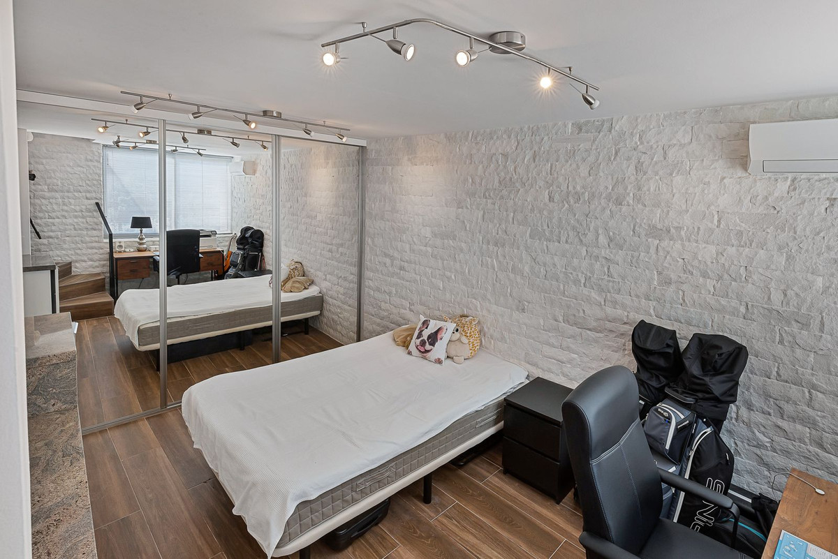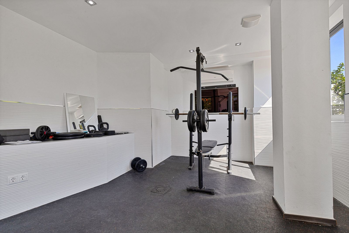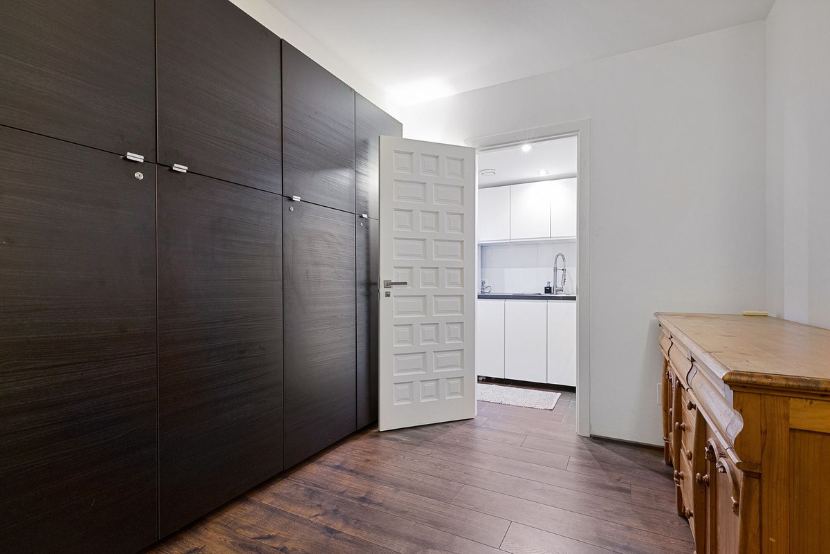 The apartment house has space and comfort for the whole family; 6 bedrooms, 6 bathrooms, 3 wc, 2 kitchens, 2 living rooms, utility room, storage room for linen and lockers, study with access through a secret door and a gym with air conditioning and mechanical supply/exhaust air. The sauna has two outdoor showers and a toilet.