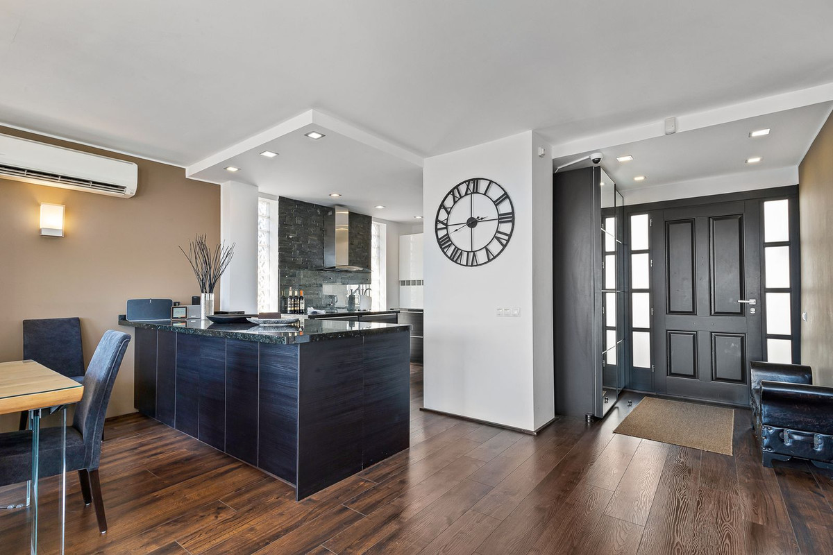 The house has an efficient mechanical ventilation system built by a Finnish company with inlet and outlet air with heat recovery. Three separate ventilation machines distribute air to a residential building, a gym and a garage. In addition, the house is connected to the natural gas network, so the domestic water and the swimming pool are heated inexpensively. In the upstairs living room, you can enjoy beautiful evenings by the gas fireplace connected to the gas network.