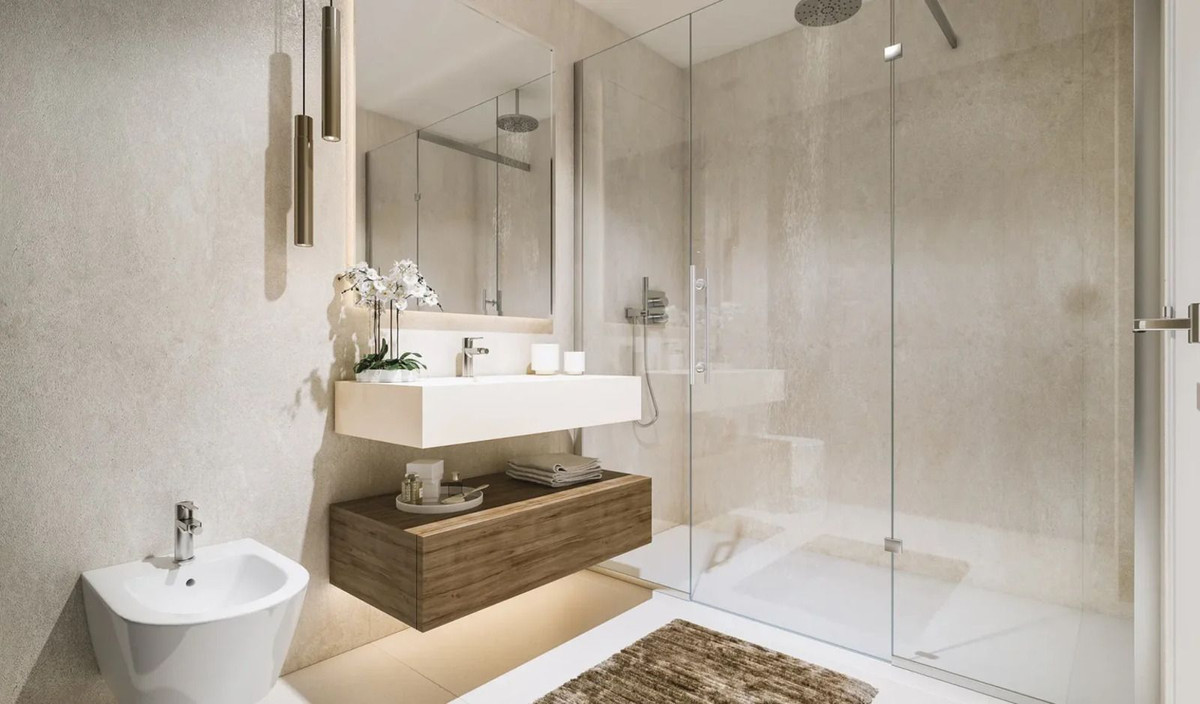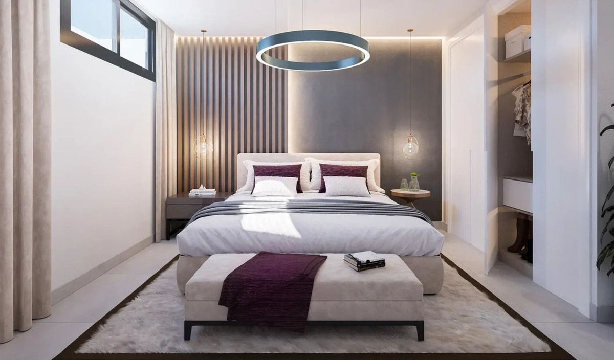 The villa features four carefully distributed bedrooms, each conceived as an oasis of tranquility and comfort. The strategically located main-floor master bedroom offers a serene retreat with an ensuite bathroom. Upstairs, another master bedroom with an ensuite bathroom and two additional bedrooms sharing a luxurious family bathroom ensure that each family member has their private space.