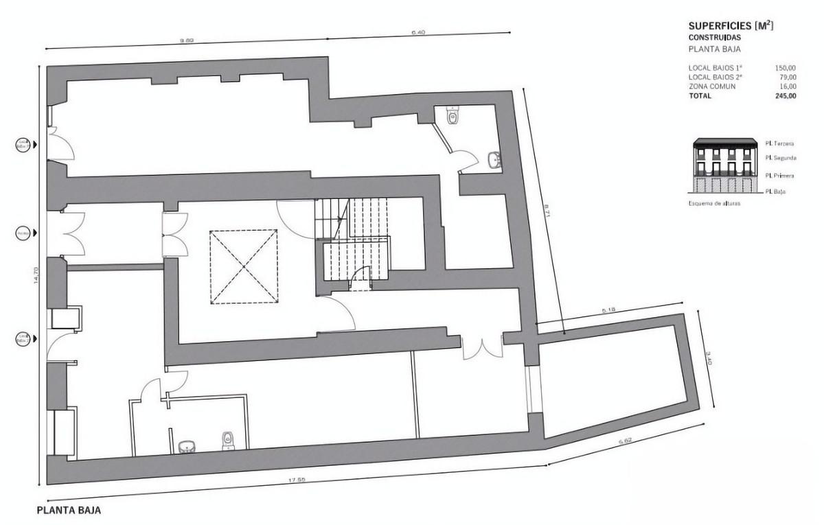 Building for sale in the center of Malaga, a step away from Calle Larios and near the sea.