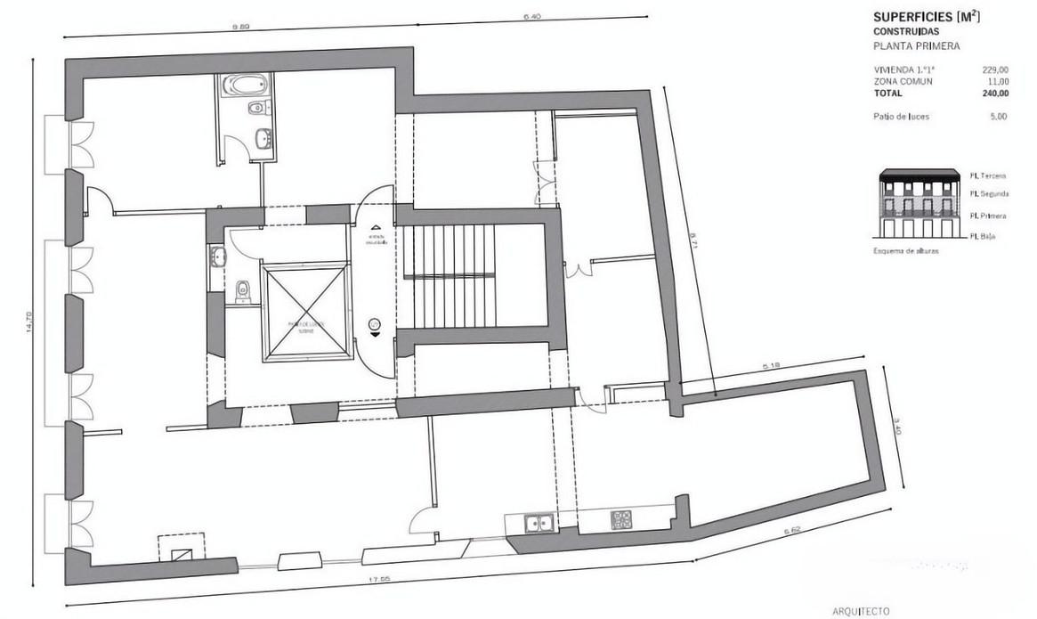 This building is divided into a total of 4 floors; That is, a ground floor plus 3 floors.