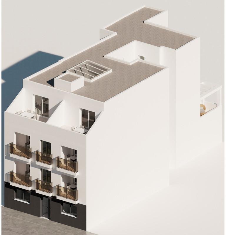 There are 6 apartments with 2 and 3 bedrooms, with 2 bathrooms, terrace and patio and 2 penthouses with 14 m 2 terraces.