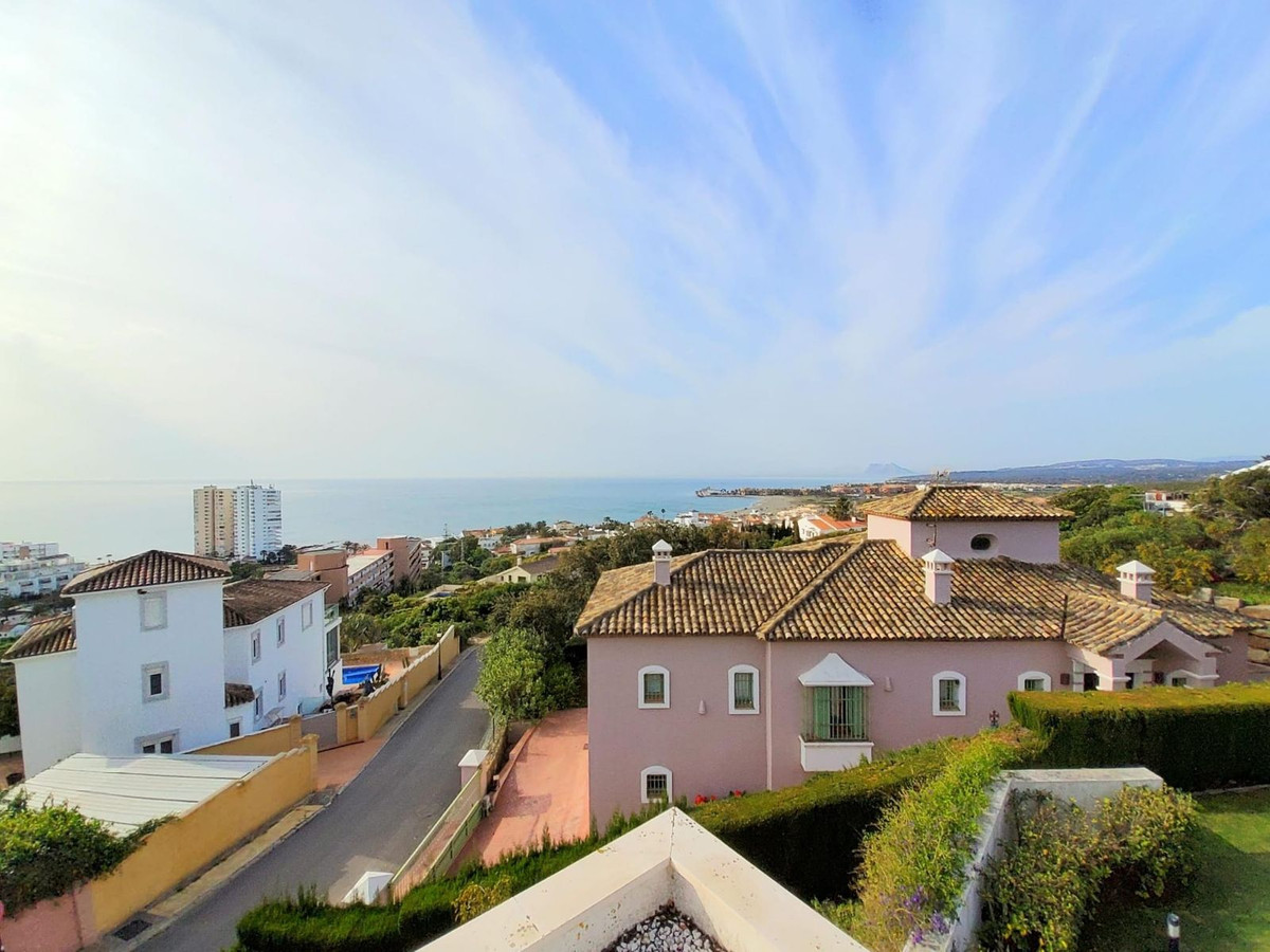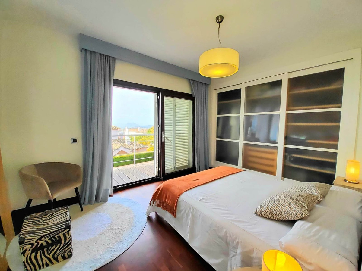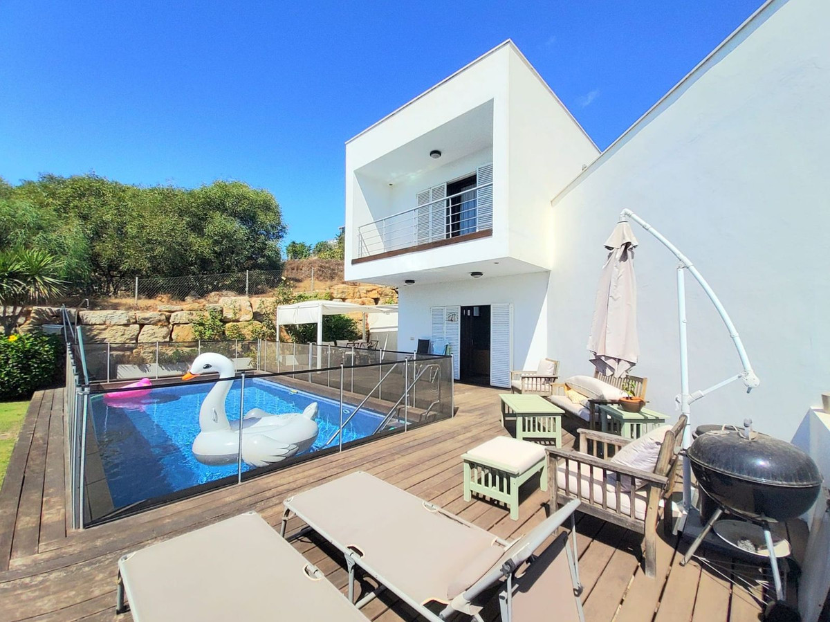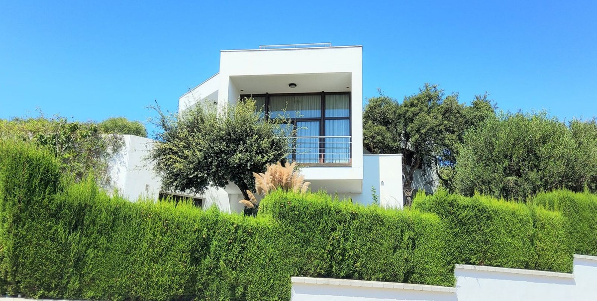 WONDERFUL CONTEMPORARY STYLE VILLA WITH GARDEN, PRIVATE POOL AND BEAUTIFUL VIEWS OF THE SEA, GIBRALTAR AND AFRICA. With a privileged location in a luxurious residential area in Torreguadiaro, JUST 5 MIN WALK FROM THE BEACH and the promenade, which will take you to the famous Port of Sotogrande, where you will find a large selection of bars, restaurants and leisure areas. Prestigious polo fields such as Ayala or golf courses such as Valderrama are 4 km away, Gibraltar airport is 10 km away and Marbella is 30 km away. This beautiful property is distributed over three floors, built with top quality materials and excellent finishes. Enjoy great light thanks to its large windows throughout the house and its SOUTH ORIENTATION. On the first floor we find the spacious living-dining room with an integrated kitchen, all in an open-plan style, very comfortable and uncluttered. On the upper floor, the rooms, of which the magnificent master bedroom with an ivory-tone marble jacuzzi bathroom. All rooms are equipped with custom wardrobes made of white lacquered wood, a minimalist and orderly feeling that achieves the entire design of the Villa.