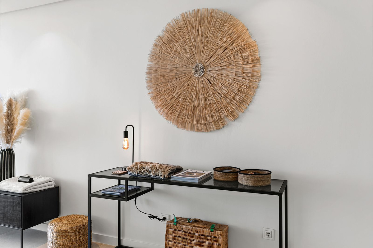 This beautiful 2 bedroom apartment near Marbella is fully move-in ready and has 2 bathrooms. The property has 73,14m2 of usable space and a terrace of more than 28m2 which is South-West facing and overlooks beautiful mountain and sea views. There is also an underground parking space and storage room. The property has quality finishes and is fully furnished with quality ibiza style furniture by Homeinspain.
