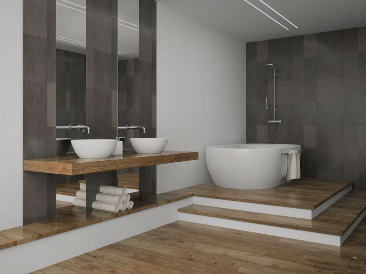 - Bathroom walls with COVERLAM plates (GRESPANIA) 2700X1200 (Color to choose)