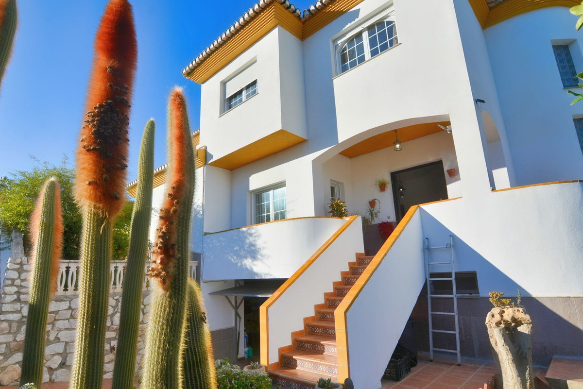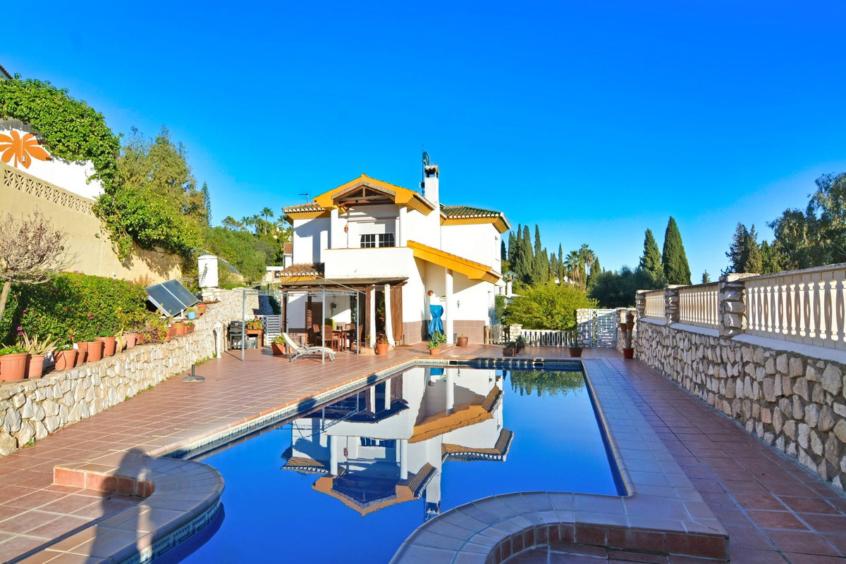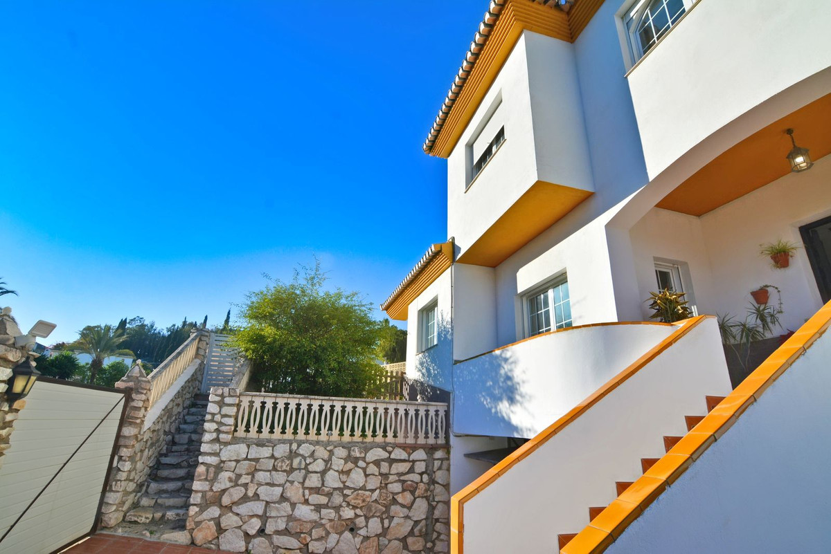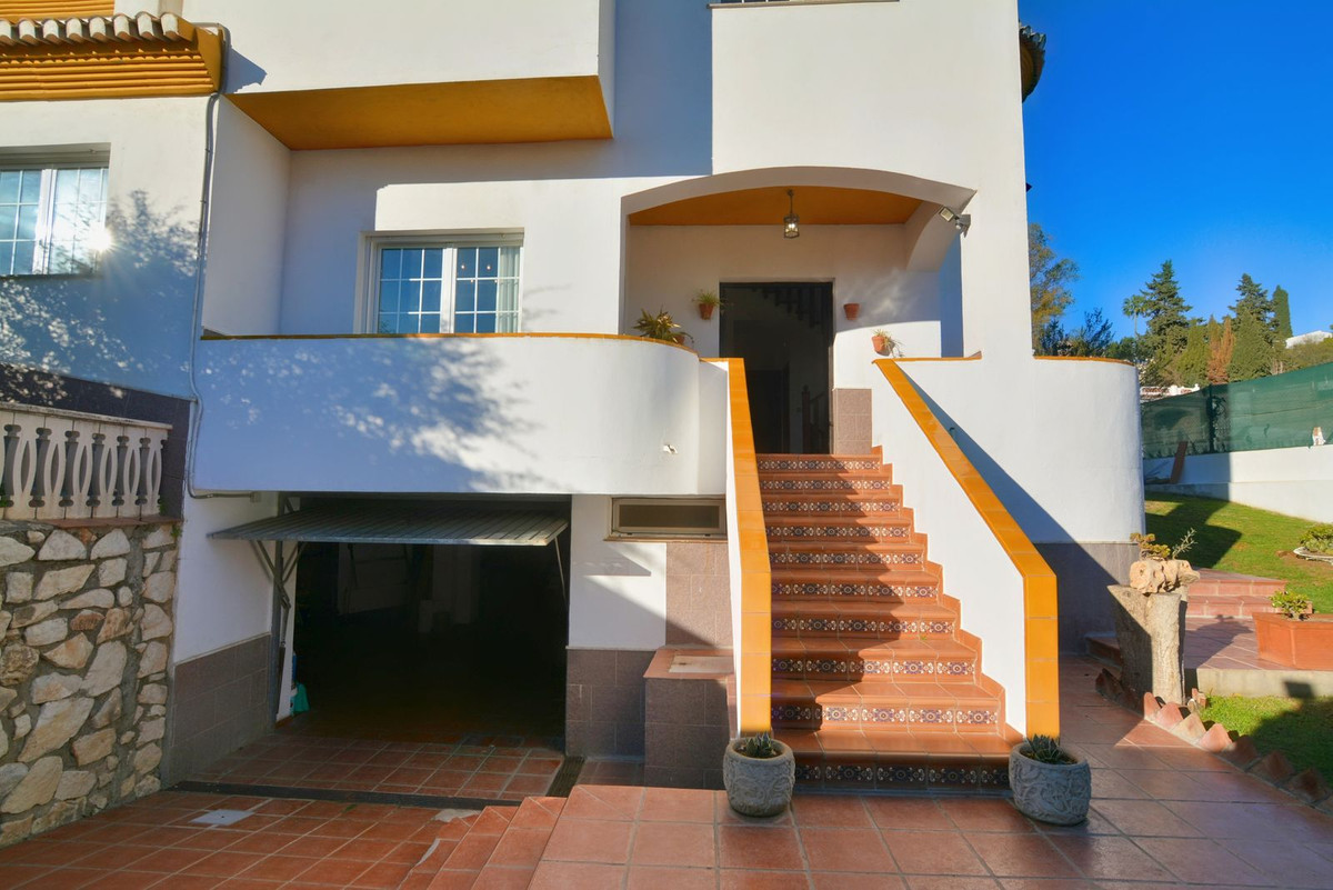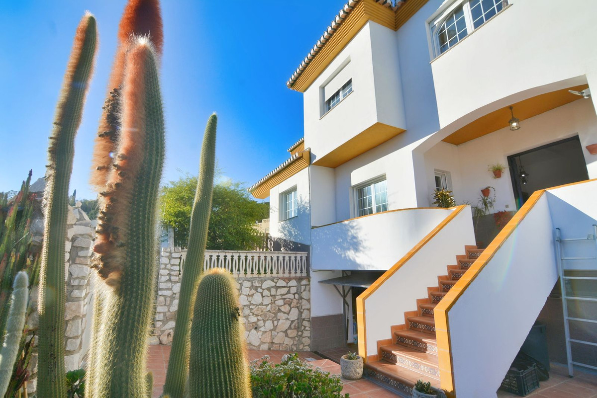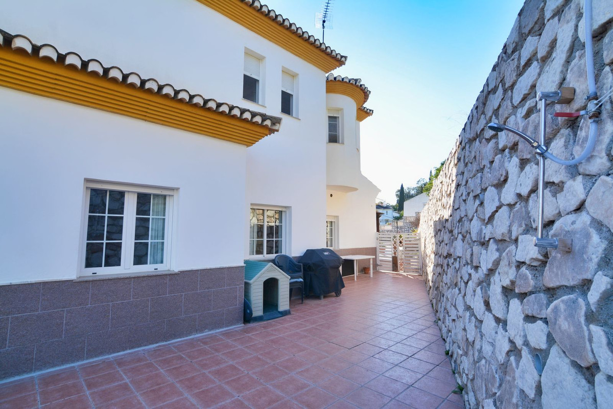 On the first floor you will find the spacious double-height living room with access to the porch and pool, this is perfect to enjoy with friends and family with a wonderful porch with sun all day long. In addition, the spacious kitchen with private laundry room and access to the outdoor area is ideal, you will also find a 1 bedroom with built-in wardrobes and a full bathroom, while on the second floor there are 4 bedrooms and 2 full bathrooms. The master bedroom has an en-suite bathroom and terrace with views of the pool and Fuengirola.