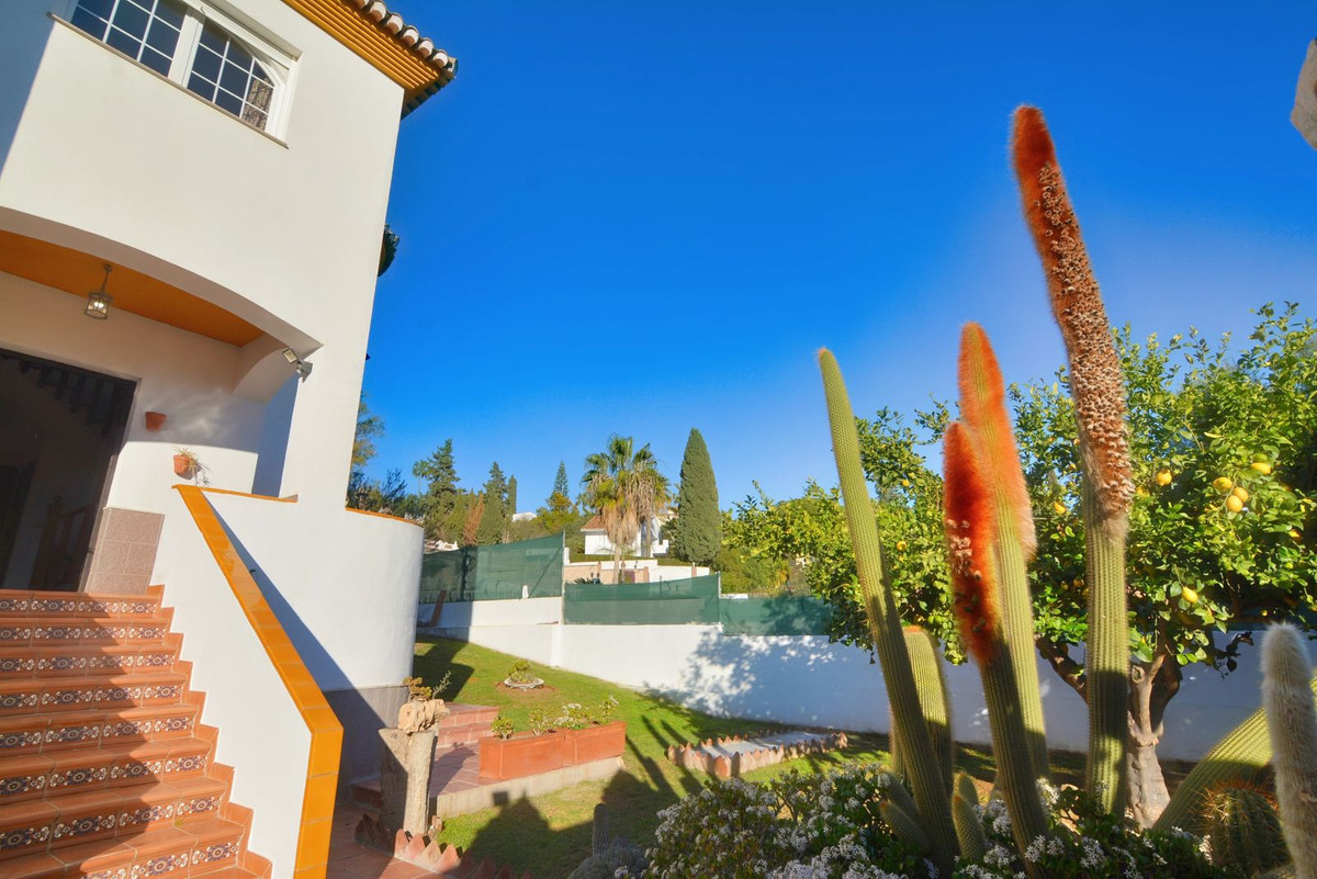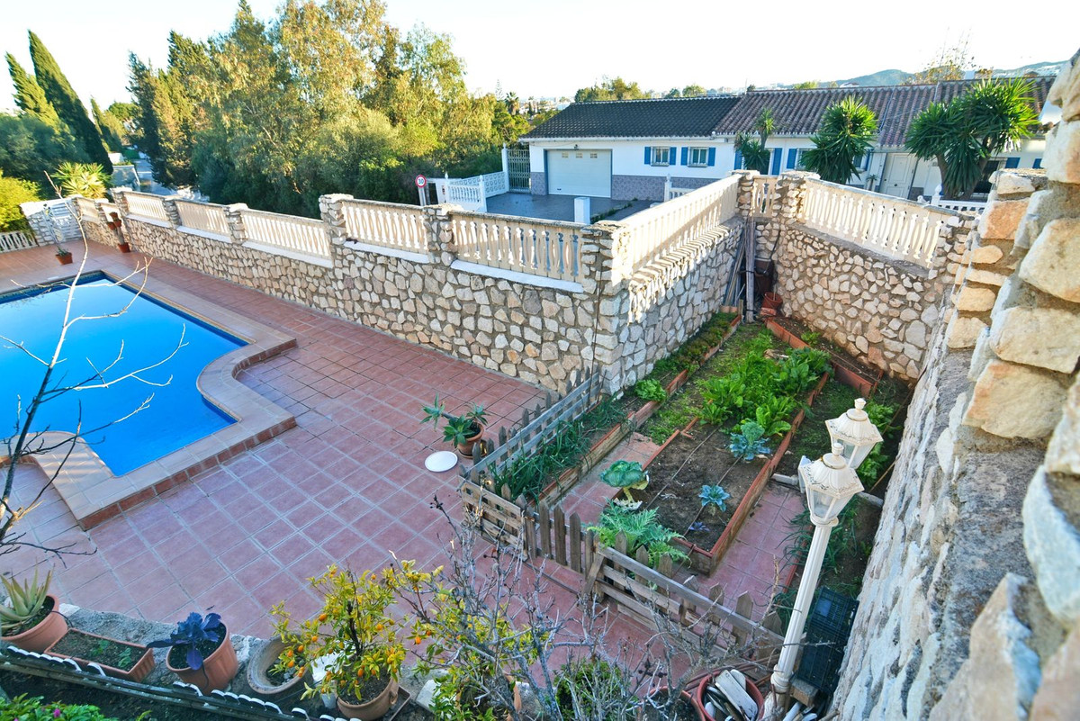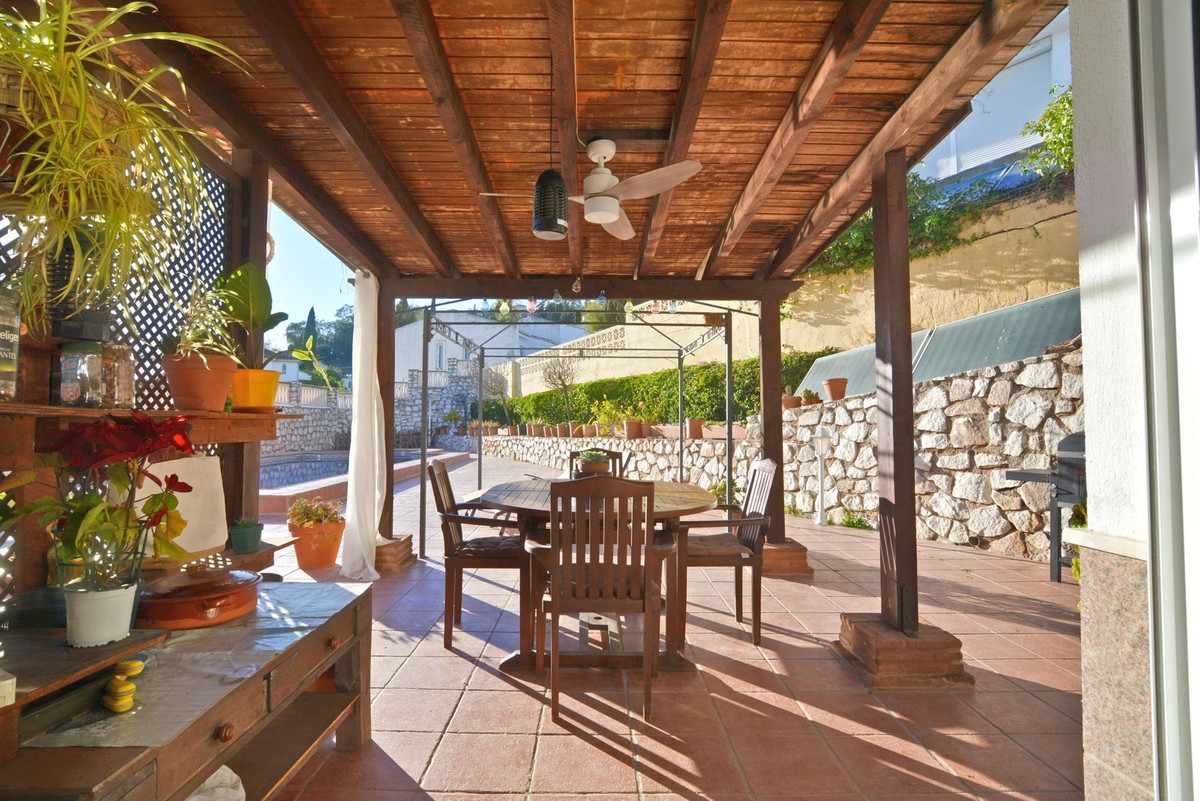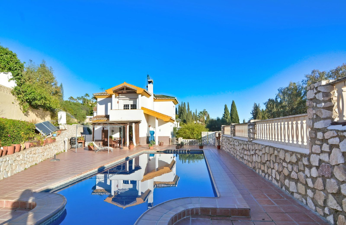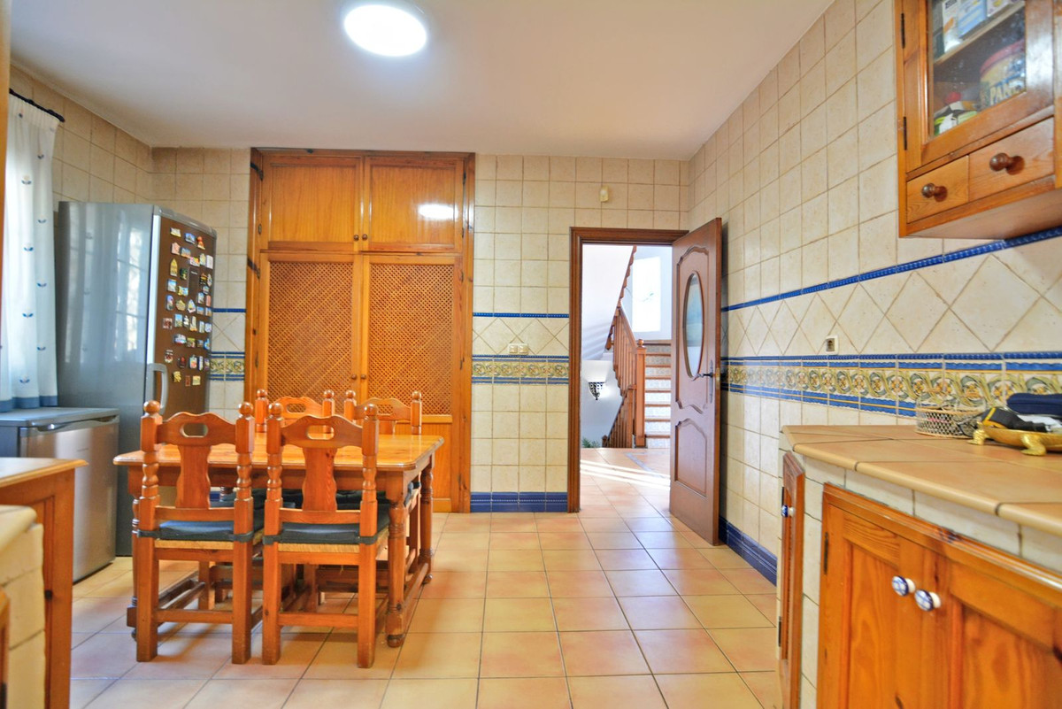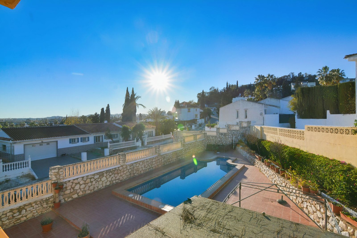 On the first floor you will find the spacious double-height living room with access to the porch and pool, this is perfect to enjoy with friends and family with a wonderful porch with sun all day long. In addition, the spacious kitchen with private laundry room and access to the outdoor area is ideal, you will also find a 1 bedroom with built-in wardrobes and a full bathroom, while on the second floor there are 4 bedrooms and 2 full bathrooms. The master bedroom has an en-suite bathroom and terrace with views of the pool and Fuengirola.