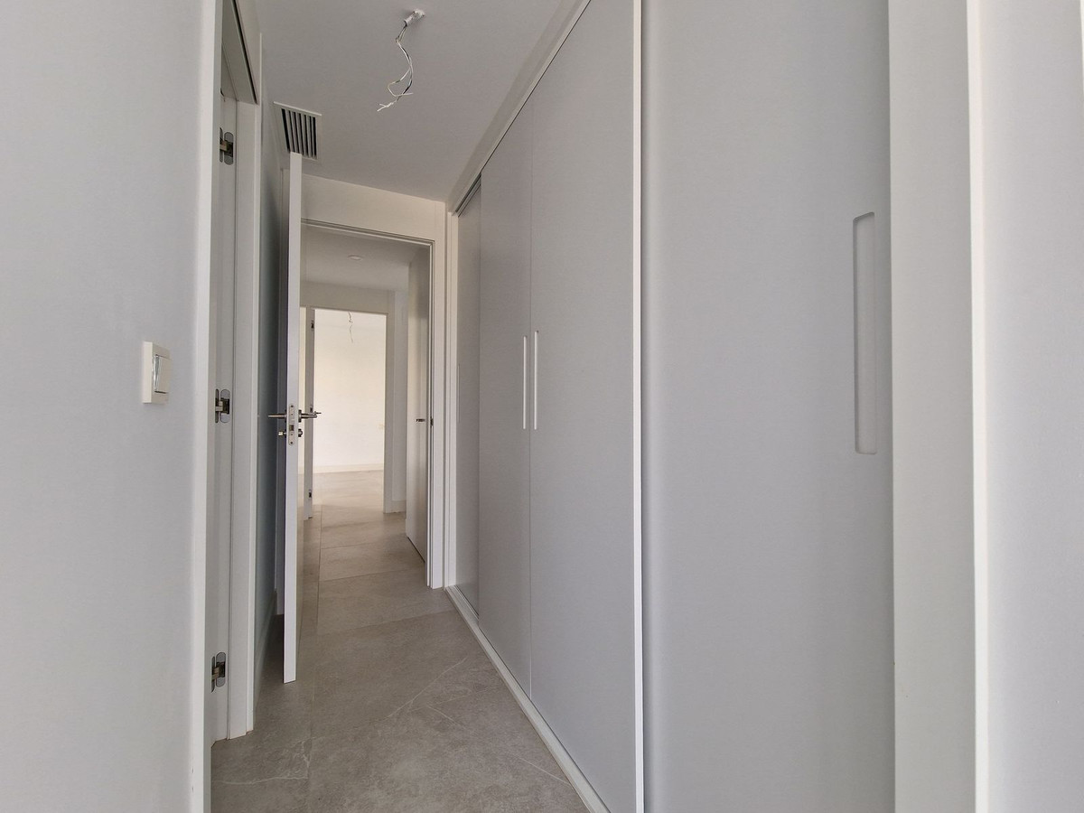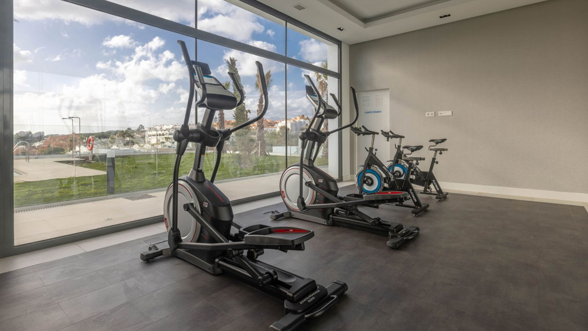 Urb. Artola Homes!!! Discover the charm of this 2-bedroom luxury apartment nestled in the coveted enclave of Artola, just a delightful 20-minute stroll from the beach. The main allure of this residence lies in its prime location in a luxury complex boasting a gym and indoor pool. As you step inside, a discreet laundry room to your right, provides ample shelf-space for linen and the washing machine and tumble dryer. The 2 bedrooms are all conveniently located ahead of you (one of which is ensuite), and the kitchen/dining area is immediately to your left, leading out to the spacious terrace. The apartment is equipped with an energy-efficient heat pump system that bestows hot or cold air according to your needs. Both bathrooms also have underfloor-heating. Easy access to the rooftop terrace, where you can enjoy the sun throughout the year. Parking is a breeze with not one but two dedicated spaces – an indoor space for your vehicle and an outdoor convenience for guests. This flat is nestled within a secure gated complex, granting you exclusive access to a cutting-edge gym for your fitness pursuits. Step into the outdoors to find a spacious pool area, perfect for unwinding in the Mediterranean sun. For those cooler days, retreat to the heated indoor pool.