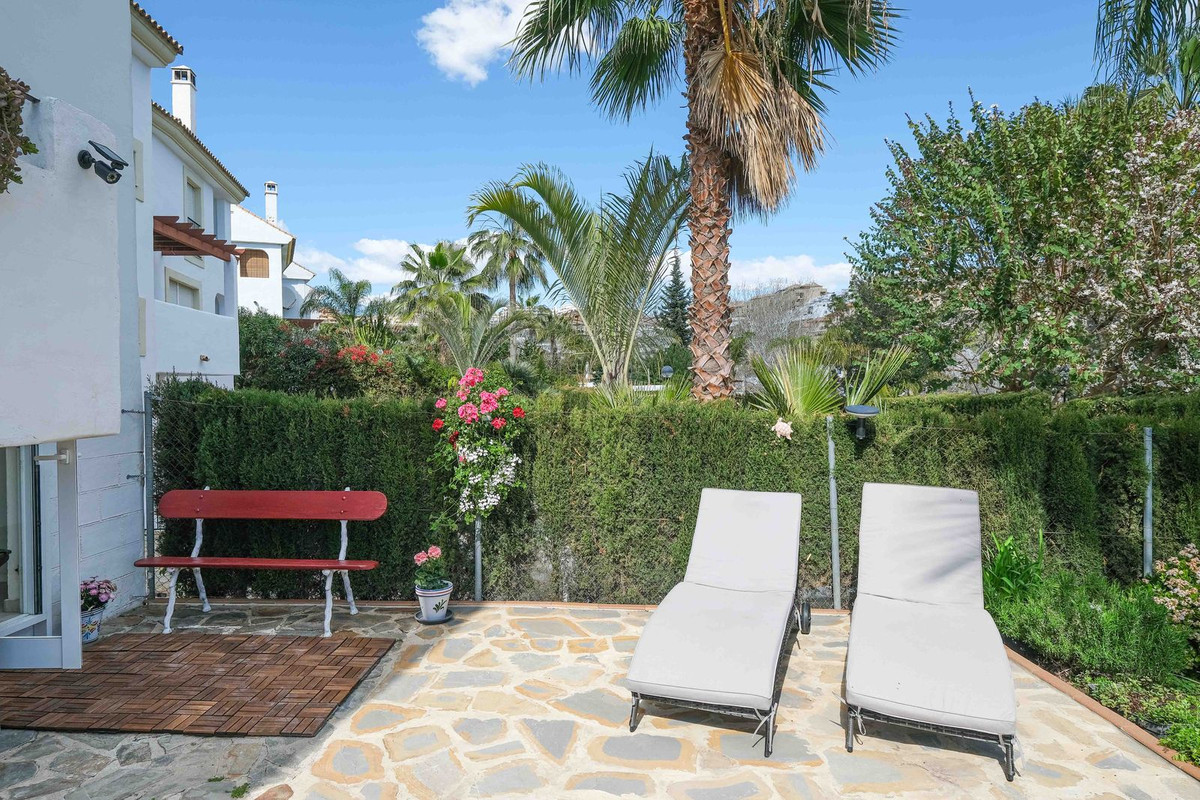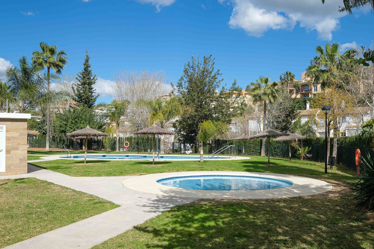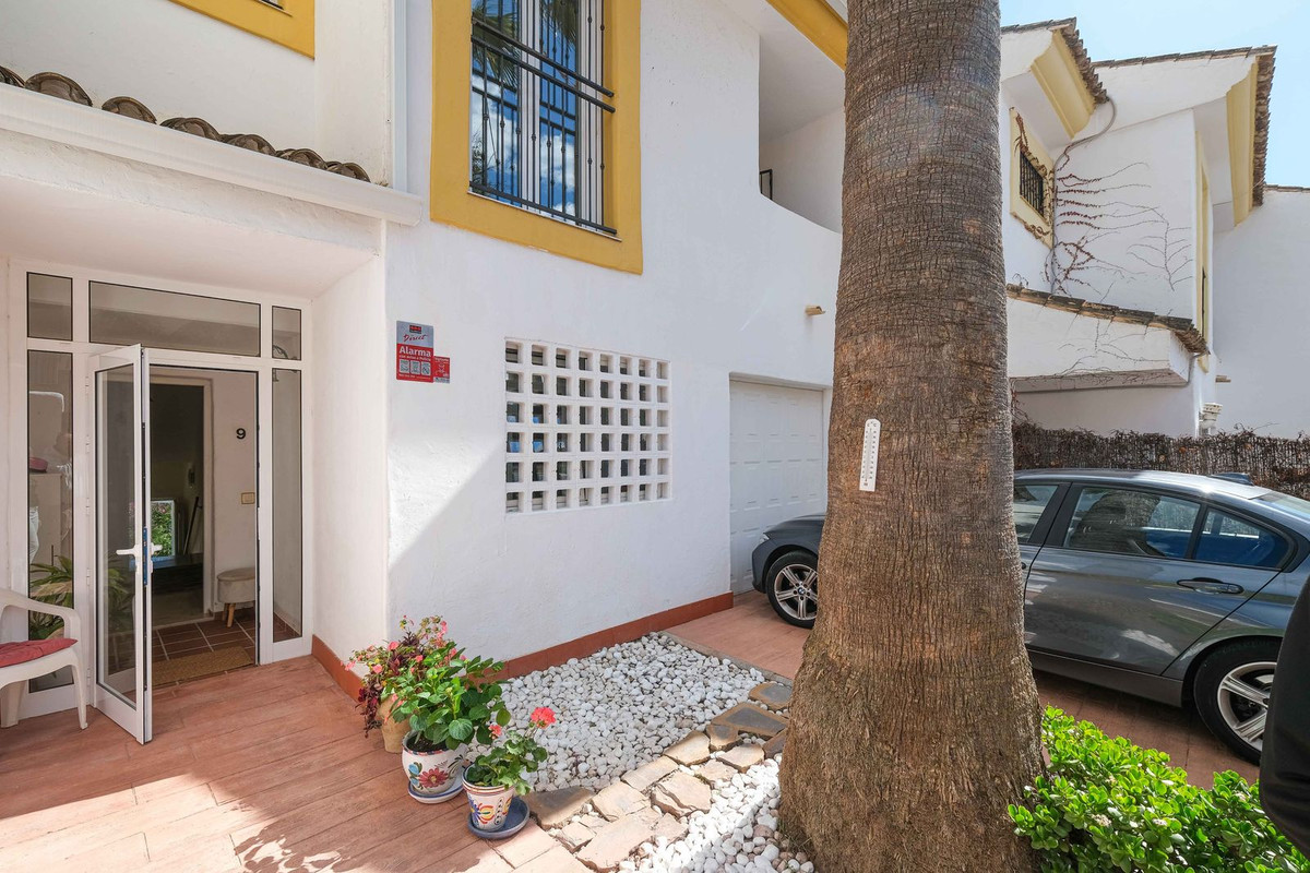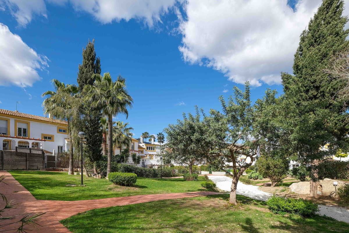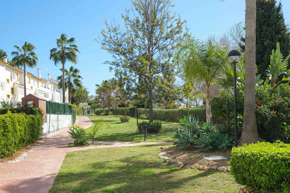 This beautiful family home has a built area of 155m2 + 60 m2 basement (total 215 m2) and a private plot of 198 m2, beautiful and well maintained community garden area with swimming pools for adults and children, The house comprisess of a spacious living room with balcony, kitchen and utility room, guest toilet and garage, upstairs 3 bedrooms and 2 bathrooms, one of the bedrooms has a en-suite bathroom with shower and toilet, two bedrooms have balconies, one has a french balcony, built-in wardrobes, lovely and beautiful open golf and gardens views, private courtyard with barbecue, lounge chairs and dining table, private garage and an additional parking space, close to the prestigious Miraflores Golf Course and Miraflores Tennis Club, two minutes driving to the beach, one minute driving to the amenities, supermarket, bars and restaurants.