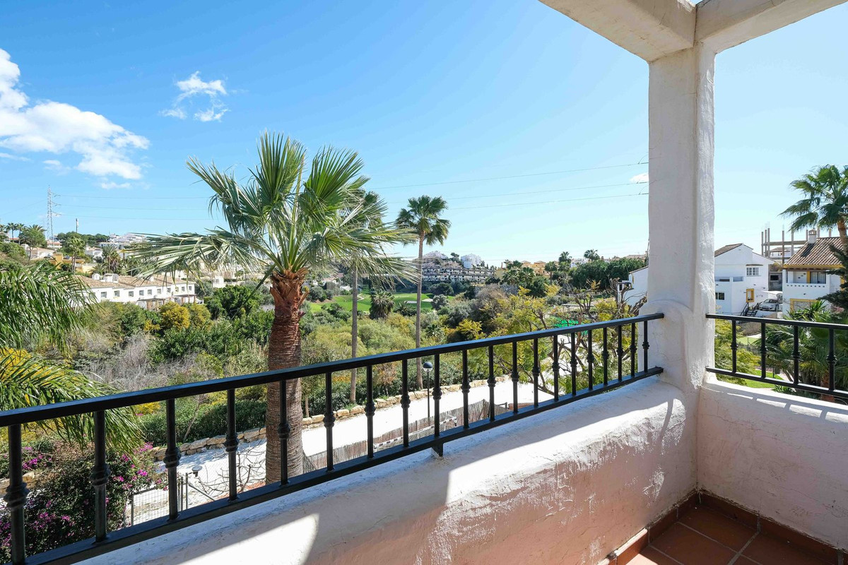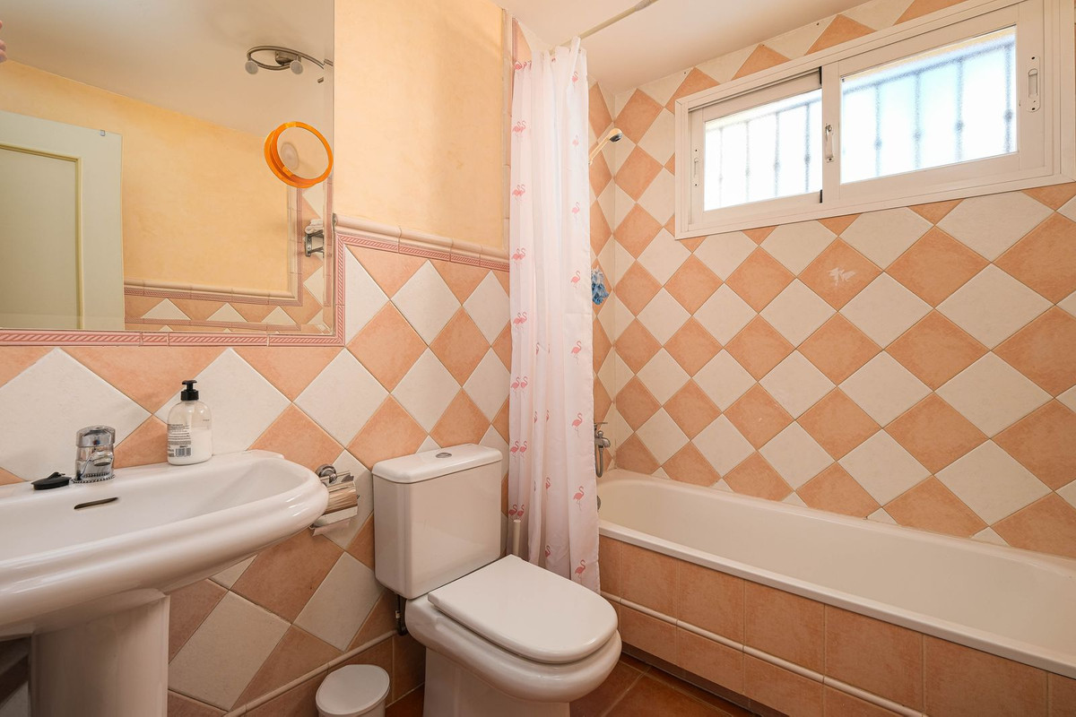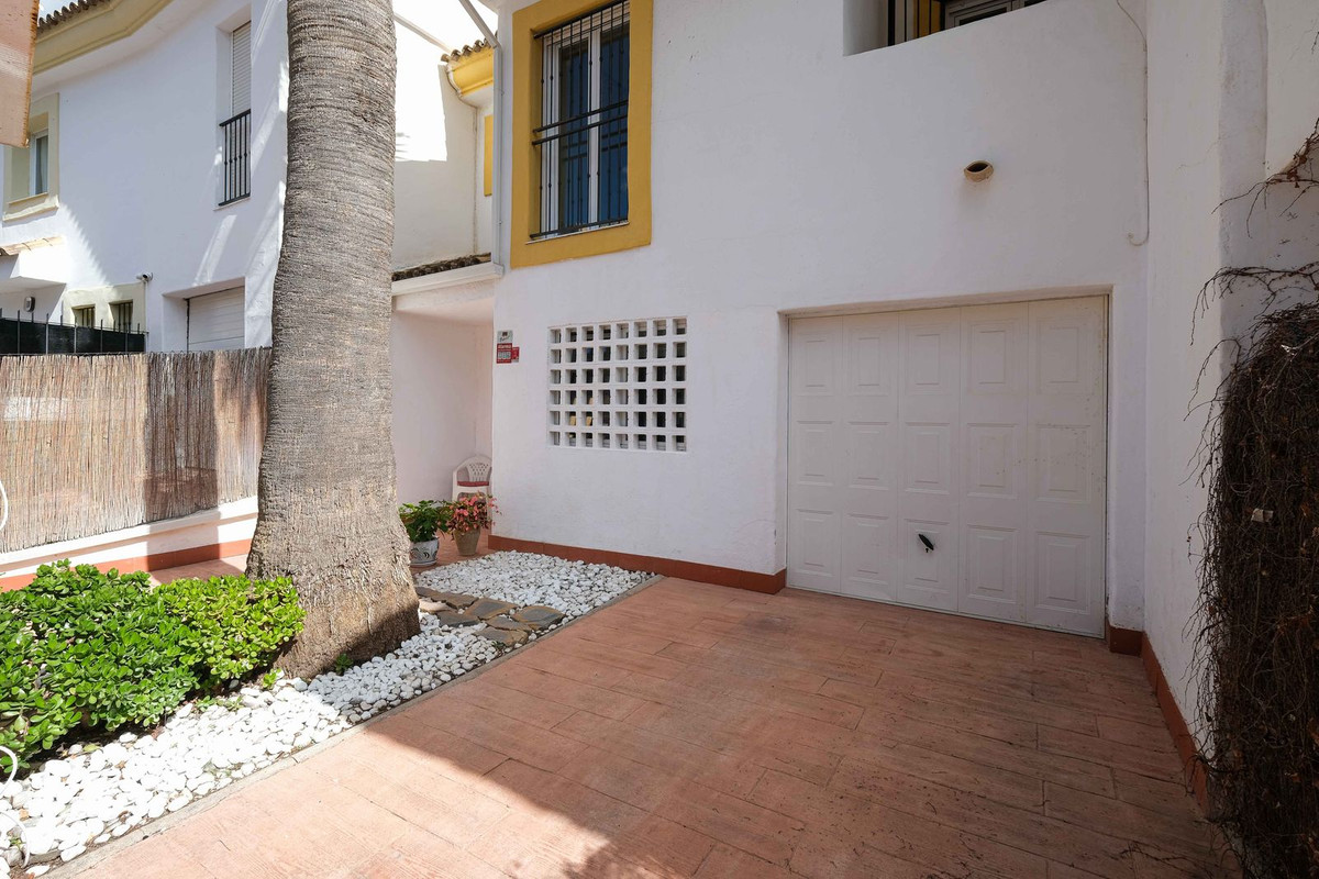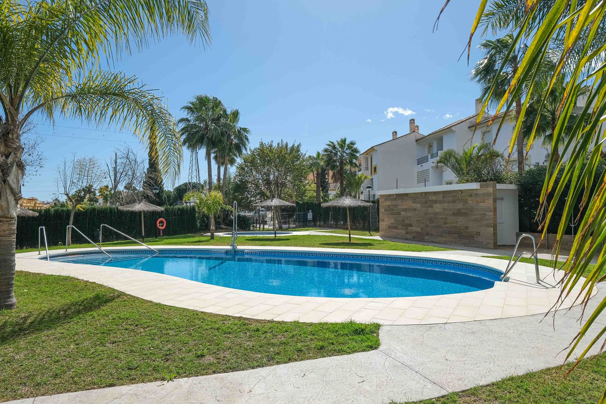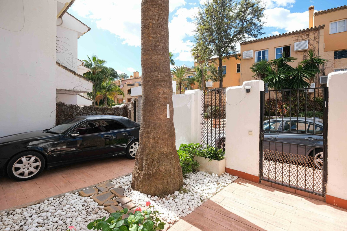 This beautiful family home has a built area of 155m2 + 60 m2 basement (total 215 m2) and a private plot of 198 m2, beautiful and well maintained community garden area with swimming pools for adults and children, The house comprisess of a spacious living room with balcony, kitchen and utility room, guest toilet and garage, upstairs 3 bedrooms and 2 bathrooms, one of the bedrooms has a en-suite bathroom with shower and toilet, two bedrooms have balconies, one has a french balcony, built-in wardrobes, lovely and beautiful open golf and gardens views, private courtyard with barbecue, lounge chairs and dining table, private garage and an additional parking space, close to the prestigious Miraflores Golf Course and Miraflores Tennis Club, two minutes driving to the beach, one minute driving to the amenities, supermarket, bars and restaurants.
