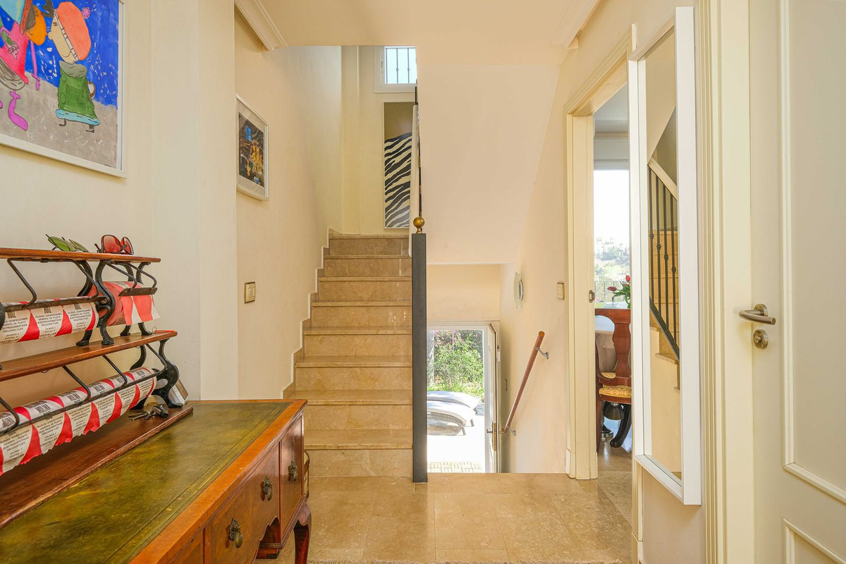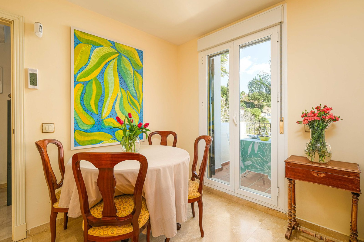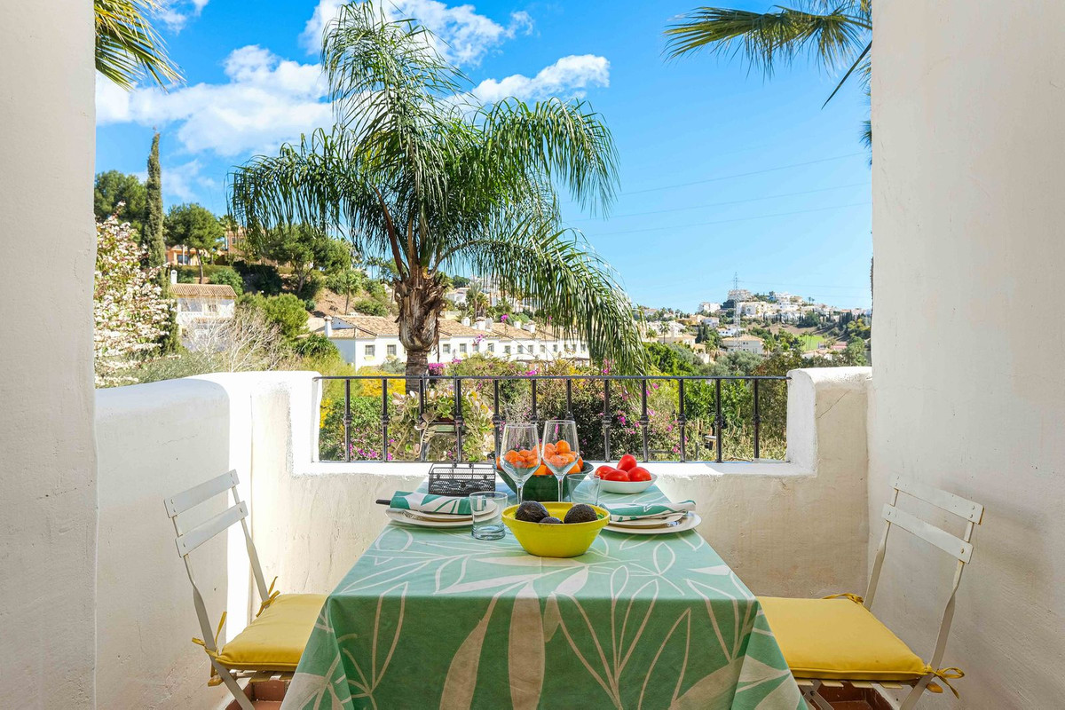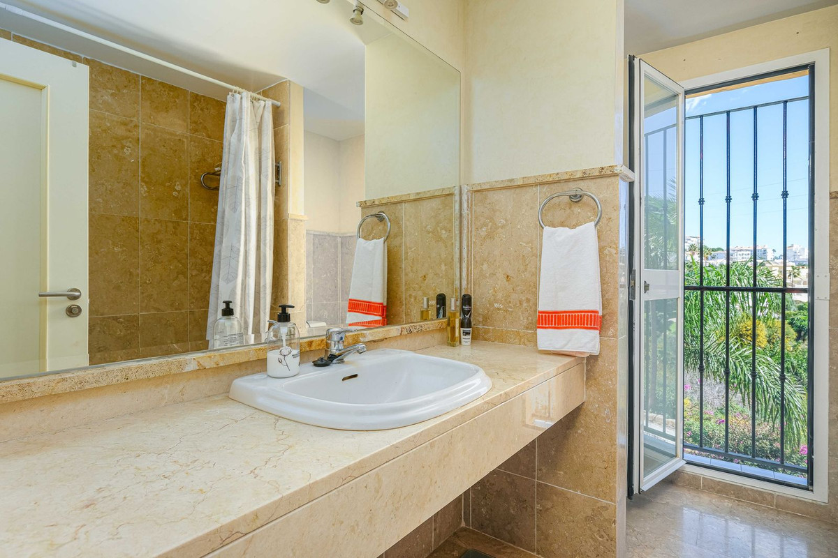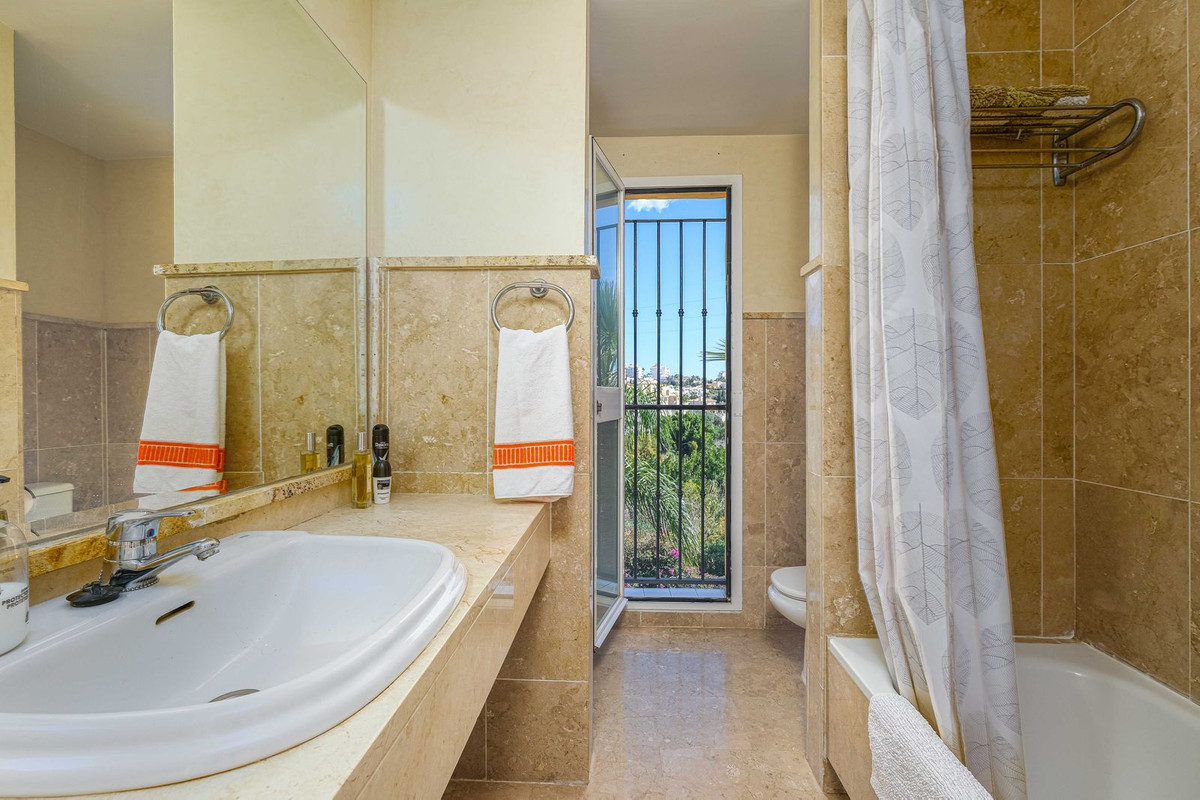 This beautiful family home has a built area of 155m2 + 60 m2 basement (total 215 m2) and a private plot of 198 m2, beautiful and well maintained community garden area with swimming pools for adults and children, The house comprisess of a spacious living room with balcony, kitchen and utility room, guest toilet and garage, upstairs 3 bedrooms and 2 bathrooms, one of the bedrooms has a en-suite bathroom with shower and toilet, two bedrooms have balconies, one has a french balcony, built-in wardrobes, lovely and beautiful open golf and gardens views, private courtyard with barbecue, lounge chairs and dining table, private garage and an additional parking space, close to the prestigious Miraflores Golf Course and Miraflores Tennis Club, two minutes driving to the beach, one minute driving to the amenities, supermarket, bars and restaurants.