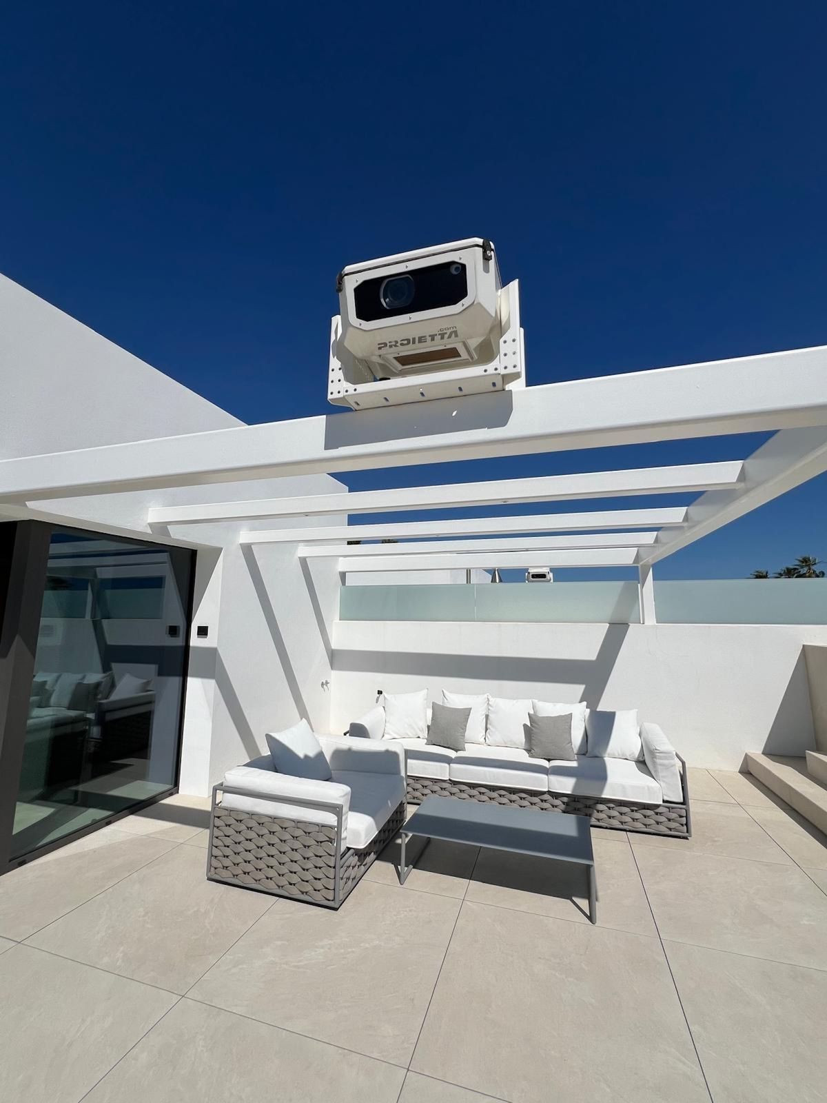 Roof terrace with private swimming pool and outdoor cinema.