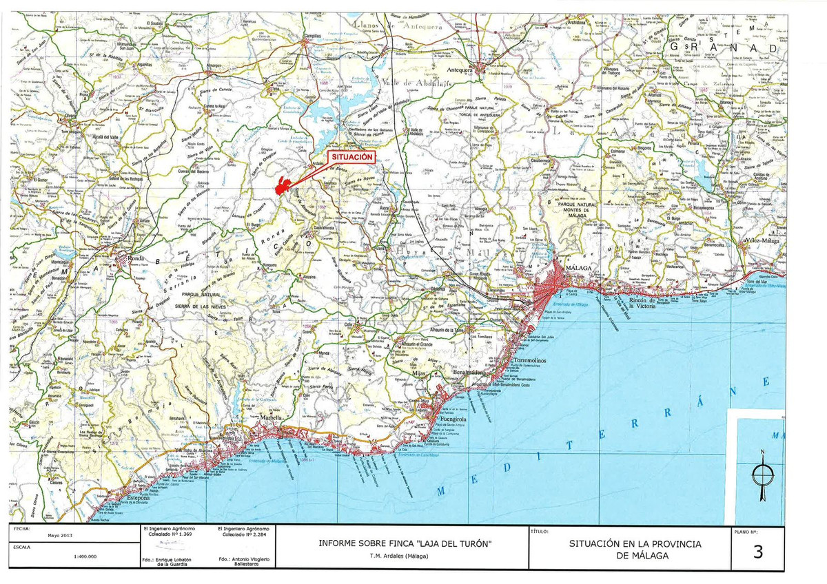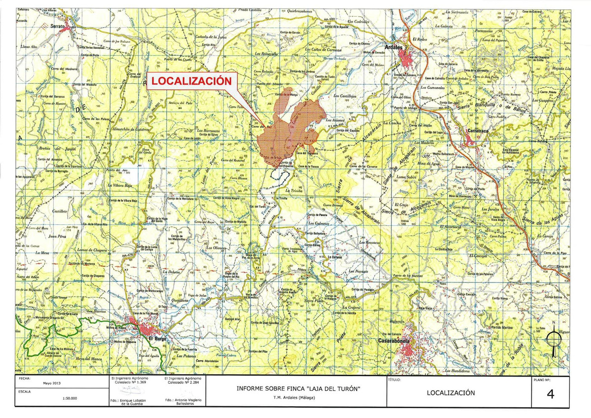 Impressive country estate close to Málaga, possibility to build..Rural property of 313 hectares (3.130.000 sqm or 773,44 acres) located in the Municipality or Ardales in Málaga Province. ..It has buildings of more than 2,500 m2 built, within a Non-Developable Land without special protection. It is possible, therefore, to develop transformation projects in it, allowing the construction of between 10 and 15 independent villas, a hotel and/or a large equestrian center. The entire area of the land is currently used for rainfed cereal cultivation (190 ha) and olive groves (80 ha), with the rest being used for forest and pasture. The estate is also an authorised hunting area in operation...The land is now aimed for cereal (1.900.000 sqm) and olive grove (800.000 sqm), leaving a wide area to free spaces of grassy scrubland mature trees hills. Besides that, the property is a running hunting ground, fully authorized. It is actually zoned as a rural (non-urban) area under no special limitations. Due to the lack of any special urban constraints, the plot may be subject to urban activities or transformation...The estate is located at the bottom (but out) of the Sierra de las Nieves, a Nature Reserve legally protected as a National Park —one of the 17 existing in Spain—, a place of a unique beauty and very rare natural conditions: it is even possible to see wild mountain goats on the fields —not to mention the extraordinary play of boars and deers actually hunted in the existing hunting ground of the estate. A Spanish firs colony, the southernmost of Europe, spreads out just a few meters away from the boundaries. By the other side of the land, to the West, the property is surrounded by a governmental mountain of public use —entitled to the Agencia Andaluza del Agua—, colonized by a magnificent Mediterranean pine forest, fully protected and publicly open without any restriction, an area that truly extents the possibilities of beneficial use and enjoyment of the plot, in an extraordinary manner. In any case, the estate is outside the territory subject to restrictions as a result of the National Park, and is therefore not affected by those restrictions...The estate has a very addecuate location regarding the infrastructures of the area: just 10 minutes away from the town of Ardales and, from there, 30 minutes far from the Málaga Airport by the new Málaga-Sevilla highway (fully approved and partially built through the first 30 kms. stretch), 20 minutes away to the high-speed train Santa Ana Station (AVE), in Antequera, and 1 hour from Marbella...Through the very estate, it runs the Turón river, the most important tributary of the main Málaga dam (pantano del Guadalhorce), a very stable watercourse, with a significant water level, which provides its habitat to the wild mustelids that can be seen on its banks, an important river of limpid waters that runs among ponds, small lakes and noisy waterfalls, shaping an alluring nature gully, crowned by rugged rock formations that give its name to the estate (\"La Laja del Turón\"), rock walls that are one of the preferred destinations for the climbing sport in Málaga province...In the estate, there is a very large farmhouse, in a good state of conservation and in full farming service: it is equipped with two service dwellings, of moderated dimensions, several well connected farm buildings, of about 2.500 m2, with a detached box stalls building for housing horses. The plot is provided with another two former farms wrecks, quite distant to each other. All of the buildings are legally subject to reconstruction, that will allow the execution of any kind of farm or ranch, with its complementary farm facilities. ..Location coordinates of the estate in Google Earth are as follows:..36 ° 50'40.47 \".N 4 ° 53'44.17\" O.