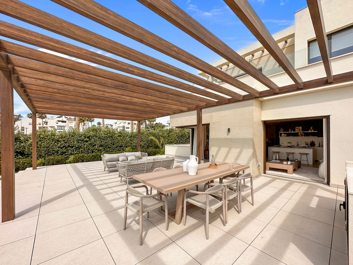 The boutique complex's facilities are luxurious: heated infinity swimming pool, outdoor gym, jacuzzi, children's pool, children's play area, barbecue and exotic gardens. In addition, the complex is gated and fully protected 24 hours a day with a concierge, video surveillance cameras and security control. The house comes fully furnished, as one can see in the pictures, by the high quality brands. Also, it has its private underground parking space, where there is a charger for electric cars.