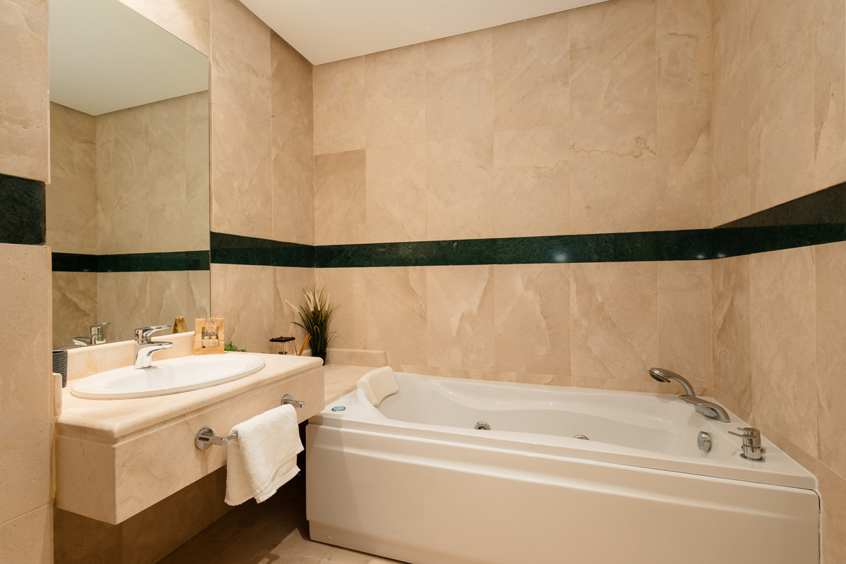 The 2 bedrooms are equipped with a king size bed, en-suite bathrooms with rain shower, bathtub and double sink.