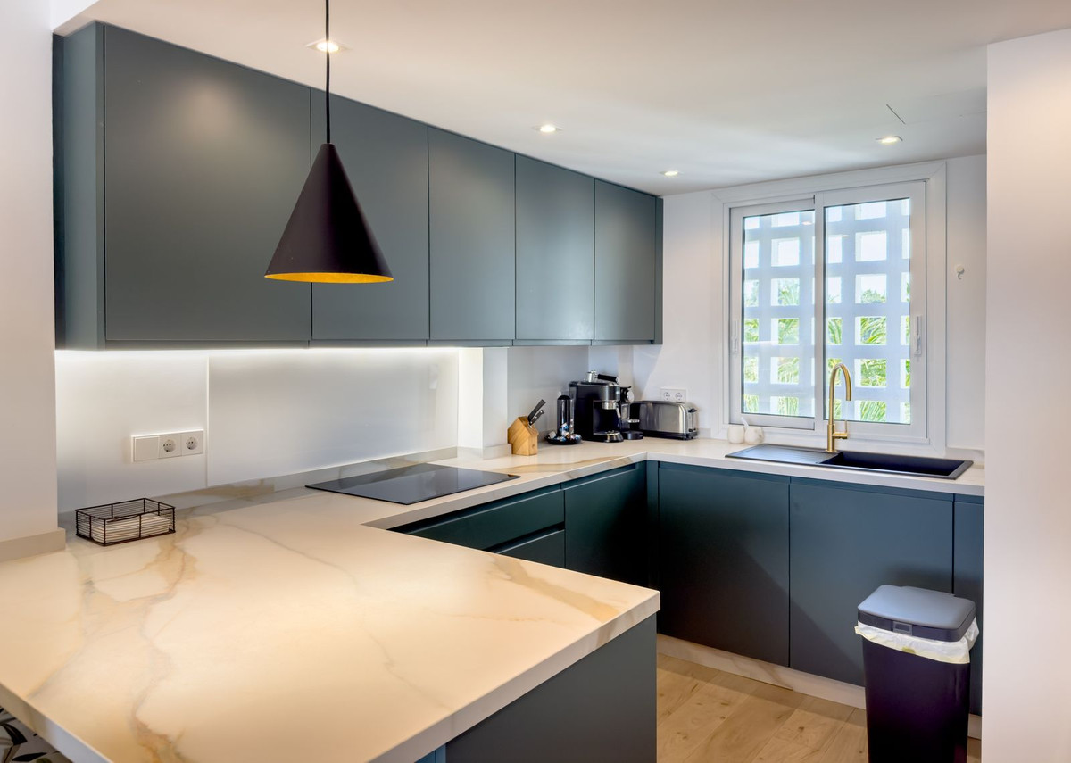 From the main living room, you access the first terrace overlooking the beautiful gardens of the development, the golf course, and La Concha, an ideal place to relax outdoors or enjoy meals.