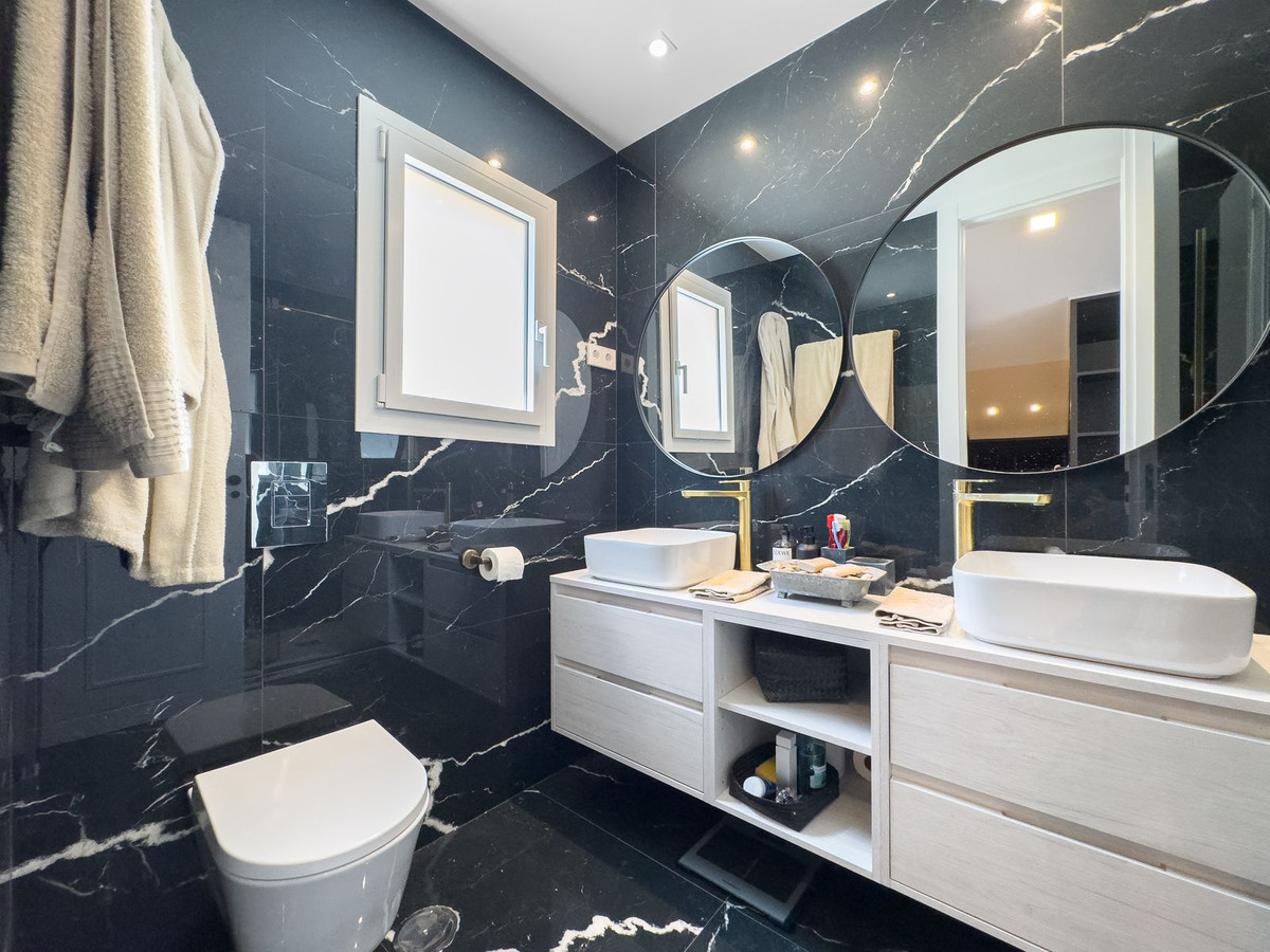 Moving up to the next level, you discover three spacious additional bedrooms, each with its own ensuite bathroom, ensuring privacy and comfort for all family members or guests. Two of these rooms have direct access to a common terrace facing west. Finally, the master suite includes a spacious walk in wardrobe and a terrace that also provides incredible views of La Concha and the golf course.