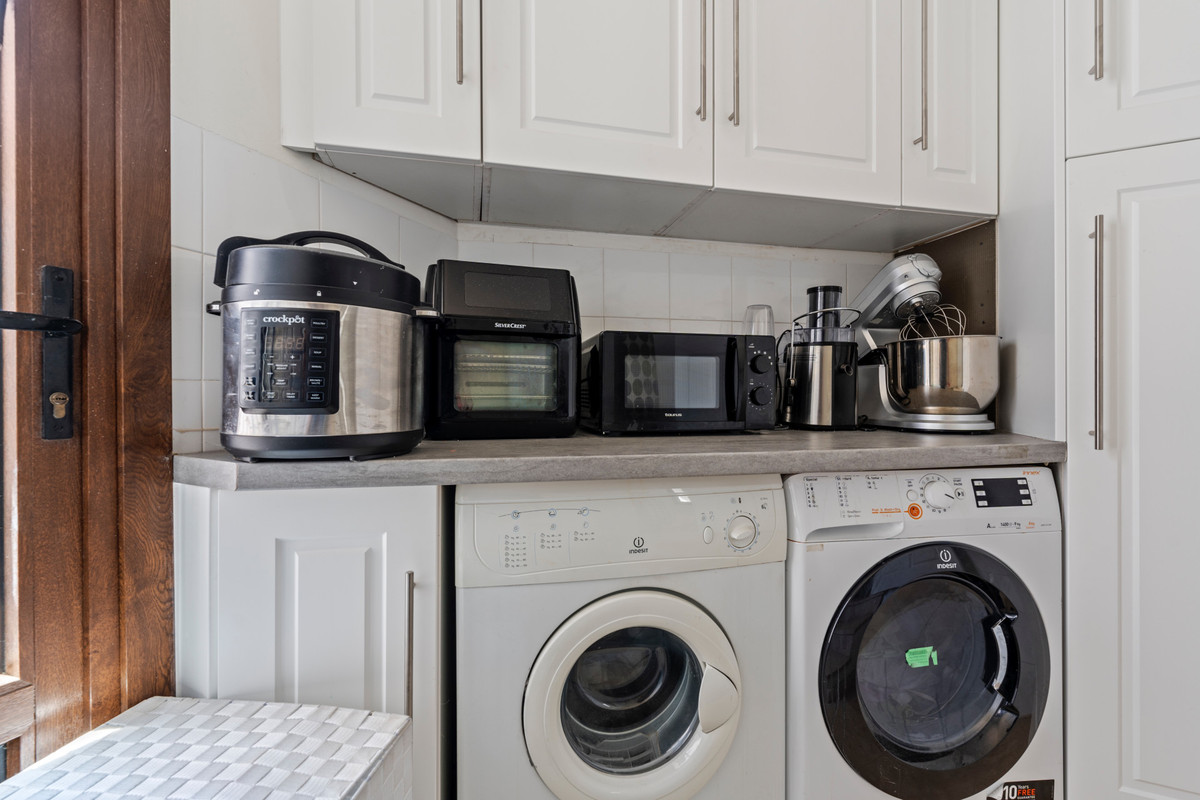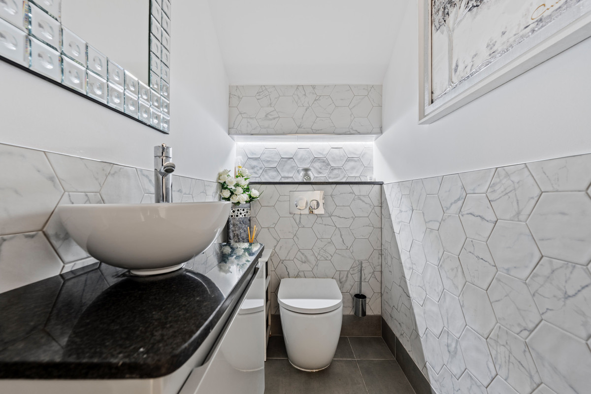 Upon entering, the high-ceilinged entrance hall welcomes you into a meticulously designed interior. The expansive lounge and dining areas are thoughtfully separated, providing both spaciousness and comfort. The property features a brand-new kitchen and immaculate bathrooms on both the ground floor and in the upstairs master bedroom. For added comfort, underfloor heating is installed on both levels, complemented by a wood burner fire in the lounge, perfect for winter evenings.
