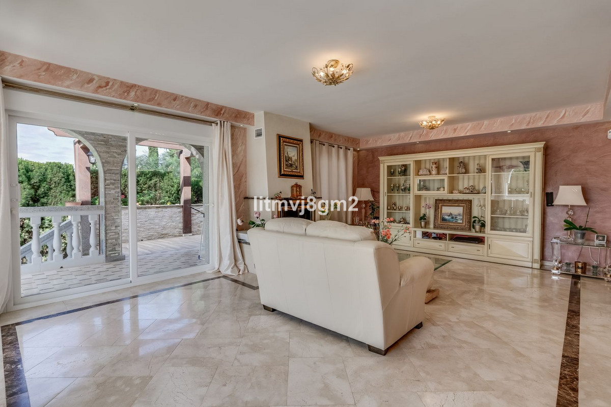 This luxurious four-bedroom villa, located in the peaceful area of lower Artola / Hacienda Las Chapas, just 5 minuntes walk to the sea, is the epitome of elegance and comfort. Boasting a classic design with high-end finishes, the property features an abundance of marble, adding to its opulent charm. The interior is bathed in natural light, enhancing the meticulously crafted details throughout the home.