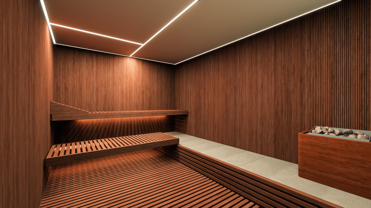 Common spaces to enjoy: swimming pool, sauna and gym.