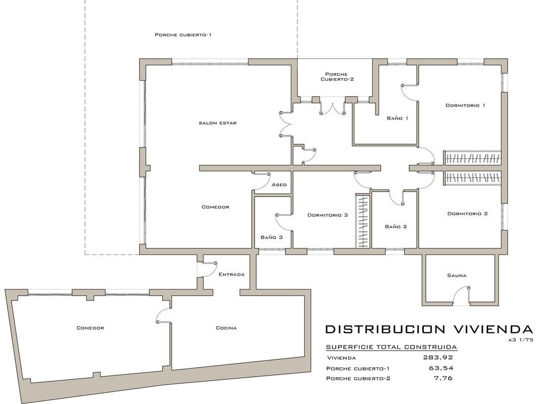 Villa to reform located in Rio Real Urbanization, 700 meters from El Trocadero beach and Rio Real Golf Club House and only 4 kilometers from the center of Marbella. It has a total constructed area of 588 m2 on a 900 m2 plot. Built on one level plus a semi-basement floor. Facing East. The semi-basement floor consists of a guest apartment distributed in living room, bedroom, bathroom, kitchen, large terrace, storage room and garage for 2 vehicles. The ground floor consists of an entrance hall, a large 65 m2 living-dining room with a fireplace with access to terraces, a large 25 m2 kitchen with access to a terraces, a second independent dining room with 35 m2 of surface area with access to terraces, 3 bedrooms, 3 bathrooms bathroom, two of them en suite and guest toilet, sauna, terraces and porches. Air-conditioning. Pool.