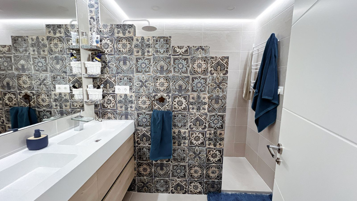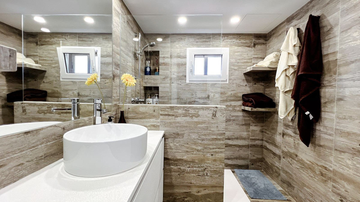 It features a centralized air conditioning system for all rooms. Additionally, it's one of the few apartments with an extra-long terrace, plus a terrace with sea views.