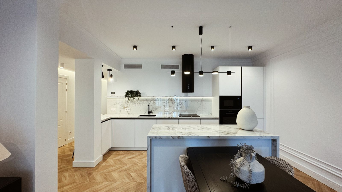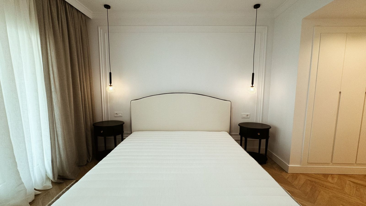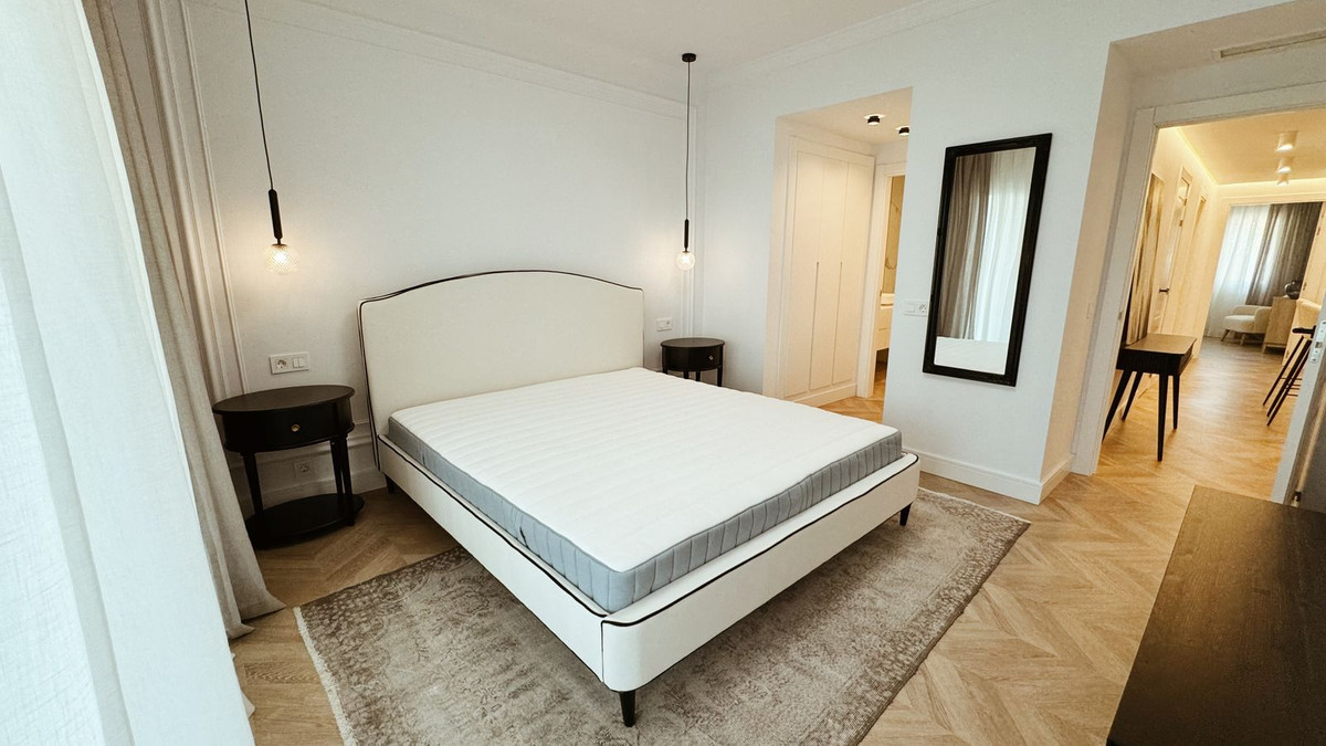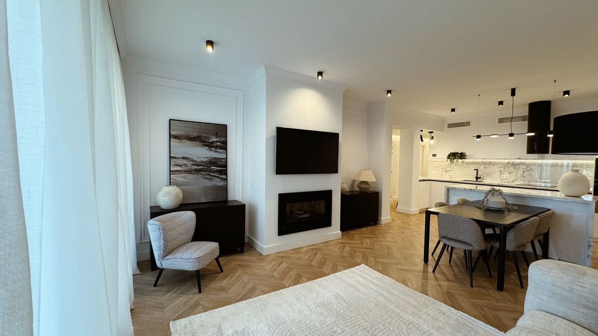 The apartment has been recently renovated and is decorated in a modern style using high-quality materials and stylish design solutions.