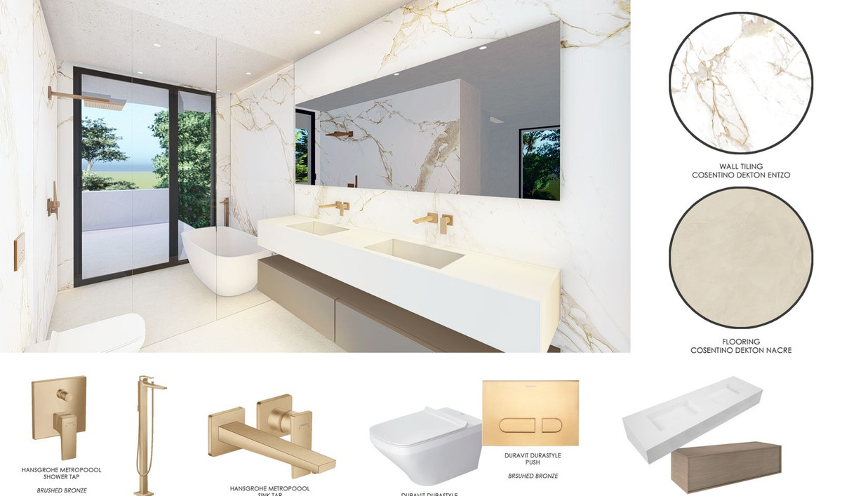 From this lovely feature the bedrooms of the first floor are accessed. The master bedroom designed with high ceilings of 19sqm with a separate dressing room area of 15m2,  and luxury ensuite bathroom of 12.5m2.  This master suite accesses the west-facing uncovered terrace of 16m2.