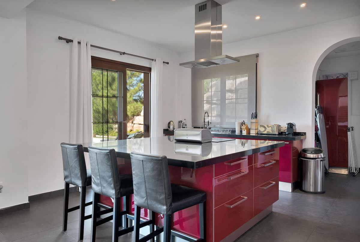 As you enter the villa, you are greeted by a unique gallery bridge that gracefully overlooks the expansive open-plan living spaces below. The spacious and airy design seamlessly integrates the living, dining, and kitchen areas, creating an inviting atmosphere for both relaxation and entertainment. The kitchen features high-end appliances, ample storage, and a sleek, modern aesthetic.