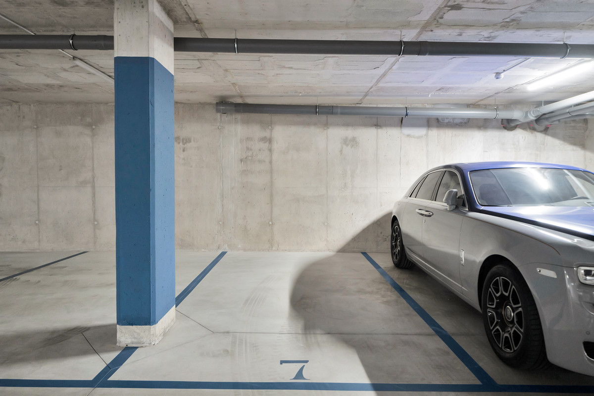 Two covered underground parking spaces and one storage room are included in the price. The apartment has not been occupied since the completion of construction, allowing you to furnish it according to your own taste.