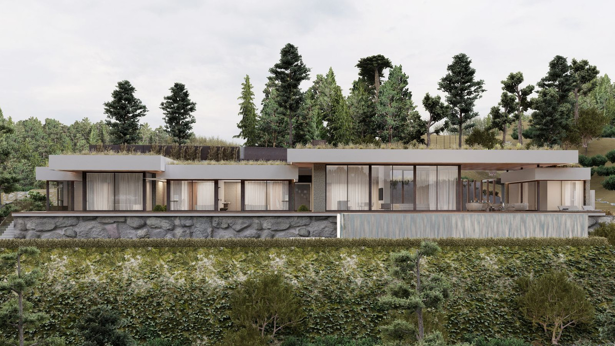The project is for an ultra modern villa where the each detail was thinking for a contemporary life style. Huge windows up to ceilings will allow enjoying these stunning views from every edge of the property. The villa will distribute into one level which is perfect as a family home and will consist of a spacious entrance leading to a double height living area with an open plan kitchen and the direct access to the outdoor chill out area with covered and uncovered spaces and a beautiful swimming pool, 4 bedrooms, 3 bathrooms, a master bedroom is en-suite with a separate dressing area. All bedrooms offers spectacular sea views and have the access to the garden. Other features are: a possibility to set up a modern gym, a sauna or an entertainment room instead of 4th bedroom, a garage for 2 cars.
