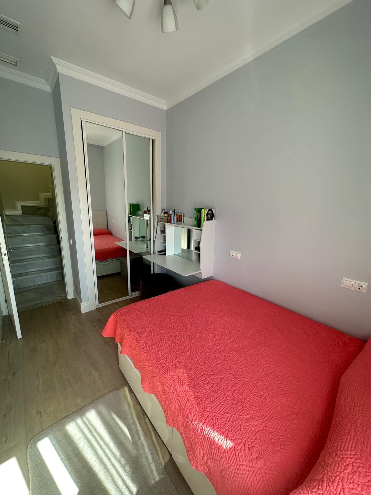 The El Coloso urbanization has 24-hour security by a security guard, three community pools and extensive green areas, perfect for relaxing and enjoying the surroundings. The house has a private garden of 50 square meters and parking for several vehicles. On the ground floor, you will find a spacious 34m² living room, a renovated 7.5m² kitchen, a 3m² dressing room and a bathroom with a shower.