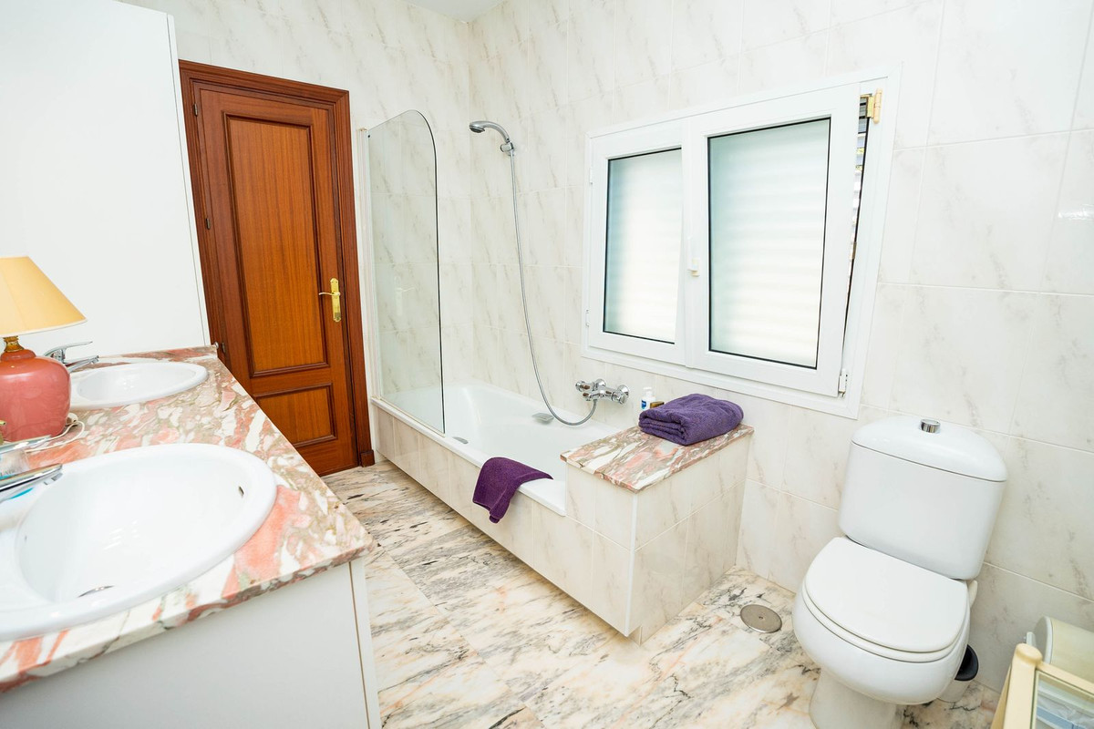Upstairs there are three bedrooms which are double and almost triple the standard size. All of them have their own bathroom en suite. All the rooms and bathrooms are exterior, so they have plenty of light and ventilation. The master bedroom has a shower and hydro-massage bath in the bathroom.