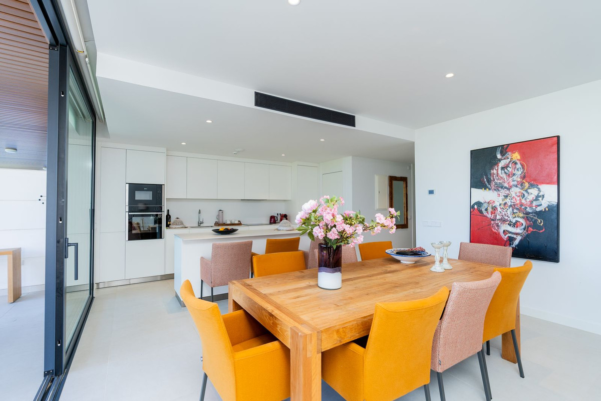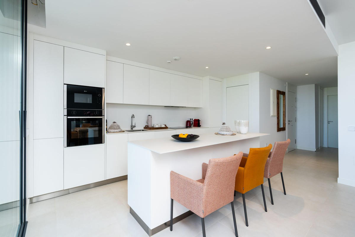 Step into a beautifully designed luxury and modern living space that seamlessly combines style and functionality. Inside, this spacious apartment enjoys plenty of natural light, elegant details and a modern open-plan design. The apartment has a sunny living room with adjoining spacious terrace facing east and southwest with sea views and a fully equipped modern open kitchen, complete with high quality appliances and elegant finishes. The large windows lead to a spacious terrace, perfect for outdoor living, suitable for relaxation and outdoor activities. The terrace is located all around the apartment, allowing you to enjoy the sun all day long. The terrace offers ample space to lounge and dine and enjoy the sunny Spanish days and enjoy breathtaking sunsets over the sea and the city.