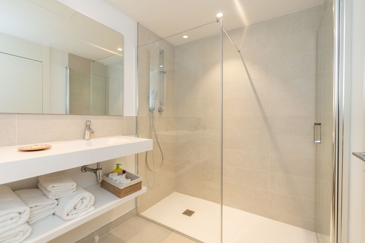 The apartment has three spacious bedrooms, each carefully decorated to offer a serene and relaxing atmosphere. The master suite has an en-suite bathroom with a spacious walk-in shower and a toilet in a closed room.