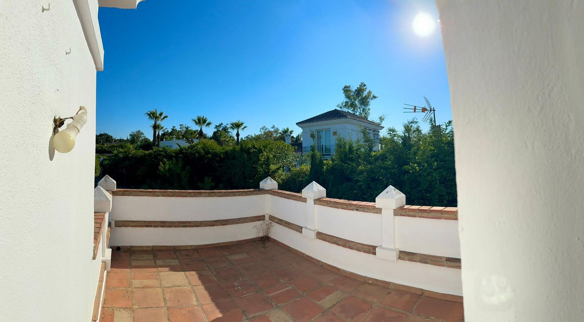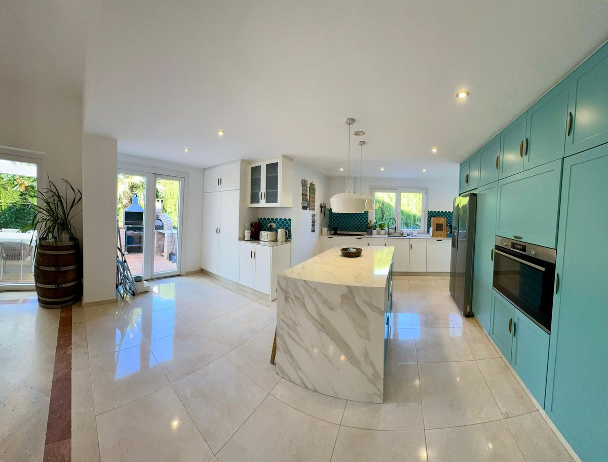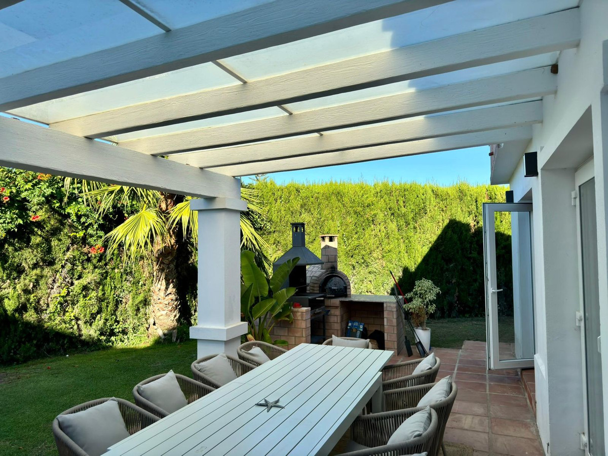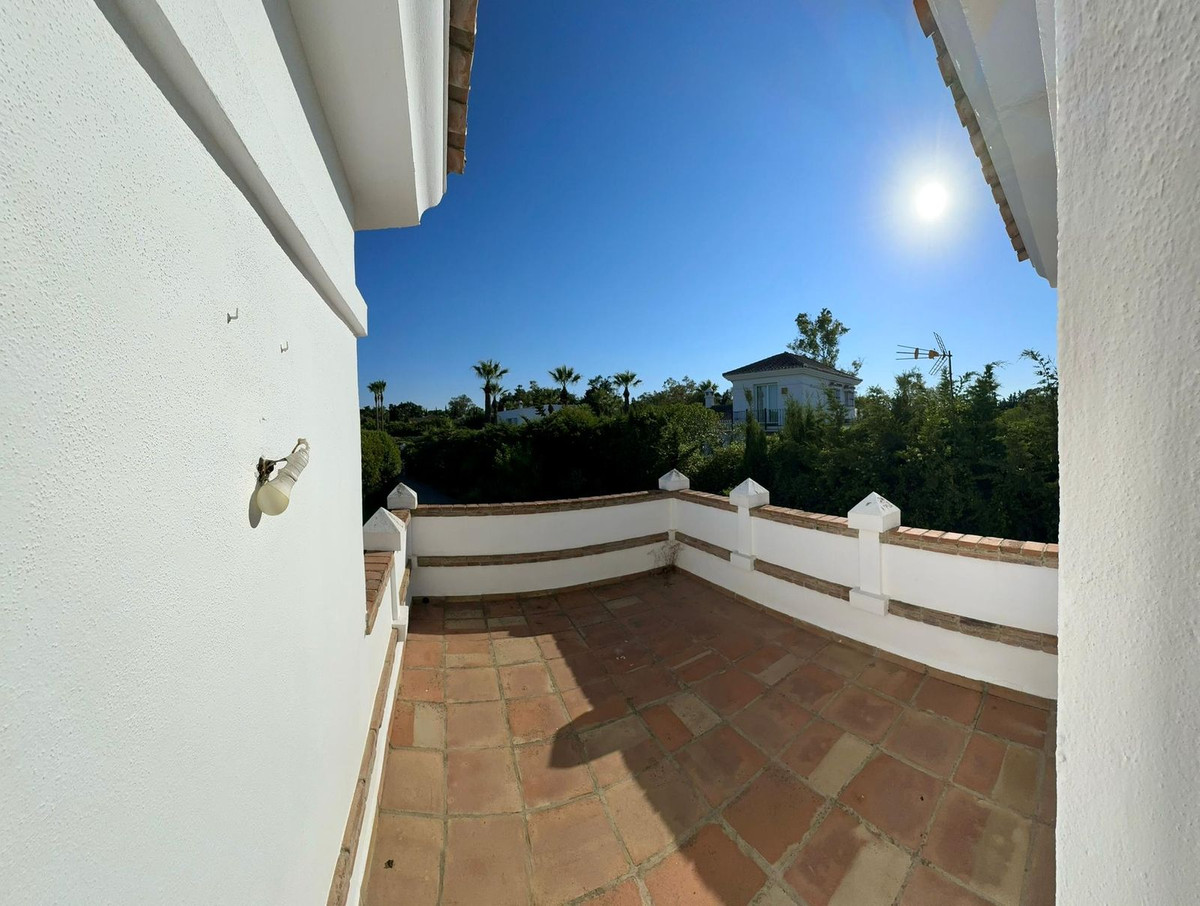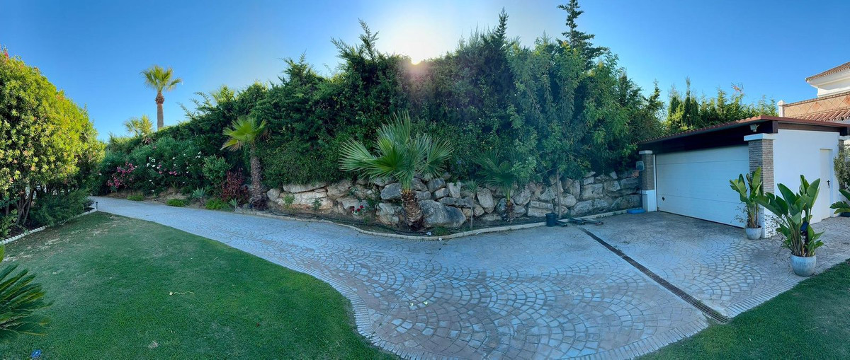 Fabulous family home in the exclusive area of Sotogrande. This 5 bed villa is located on the beachside of the main A7 road and close to a number or shops and amenities, as well as the beach and marina of Sotogrande. The property has a lovely entrance and drive way, leading to a private garage and to the front of the house, which faces the well maintained pool and garden. There are various outdoor living areas, where you can enjoy all day sunshine, or find some much needed shade in the hot summer months. There are chill out areas, dining areas and a superb spot for BBQ and an outdoor pizza oven. The villa is exceptionally well priced and is perfect for either a holiday home, or permanent family residence.
