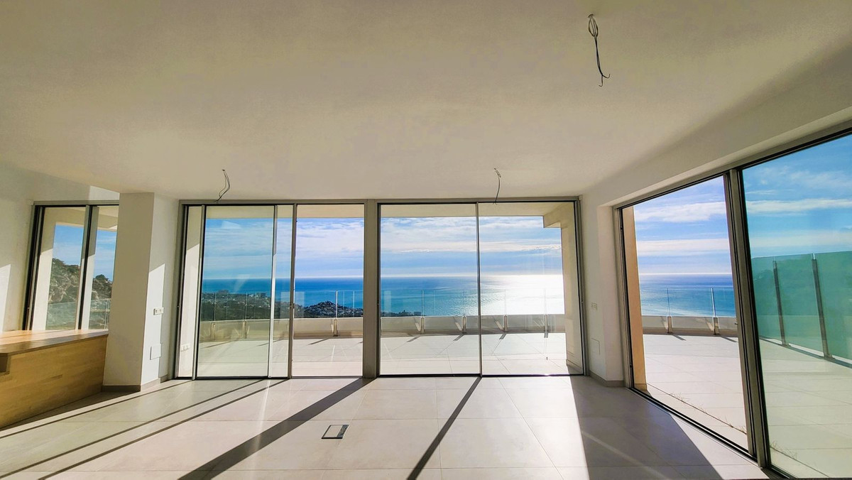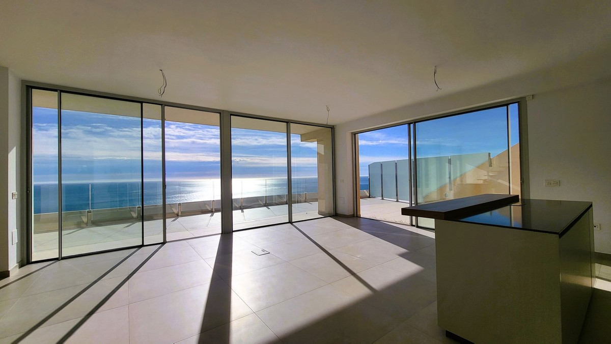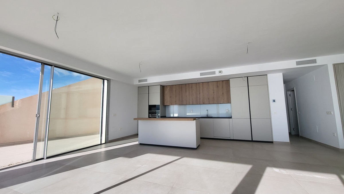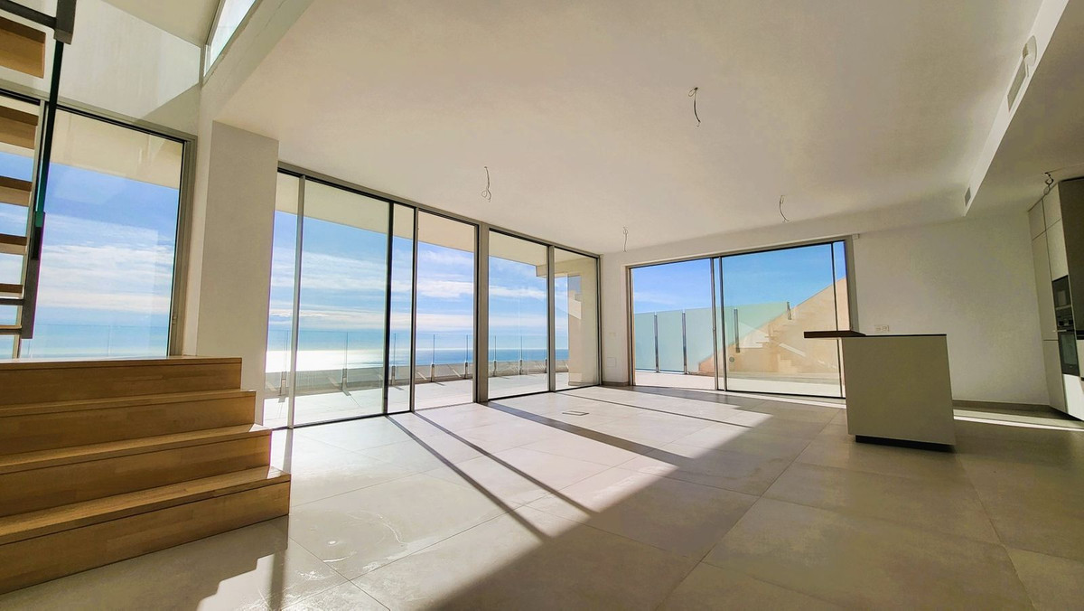 Brand new south facing penthouse duplex, located in the exclusive urbanization of Stupa Hills. The property consists of hall, 3 bedrooms with built-in wardrobes and electric blinds, bathroom and guest toilet, open plan kitchen fully furnished and equipped with electricial appliances from Siemens. Spacious living-dining room that leads out to a terrace of 65m2 with panoramic sea views, the Fuengirola Bay and of the Buddist Temple. On the top floor is located the main bedroom with walk-in closet, ensuite bathroom and laundry area. The bedroom leads out to a terrace of 21m2 with panoramic sea views. Air conditioning hot and cold with Airzone, video intercom, domotic system, pre-installation alarm system. Includes two parking spaces and one storage room.