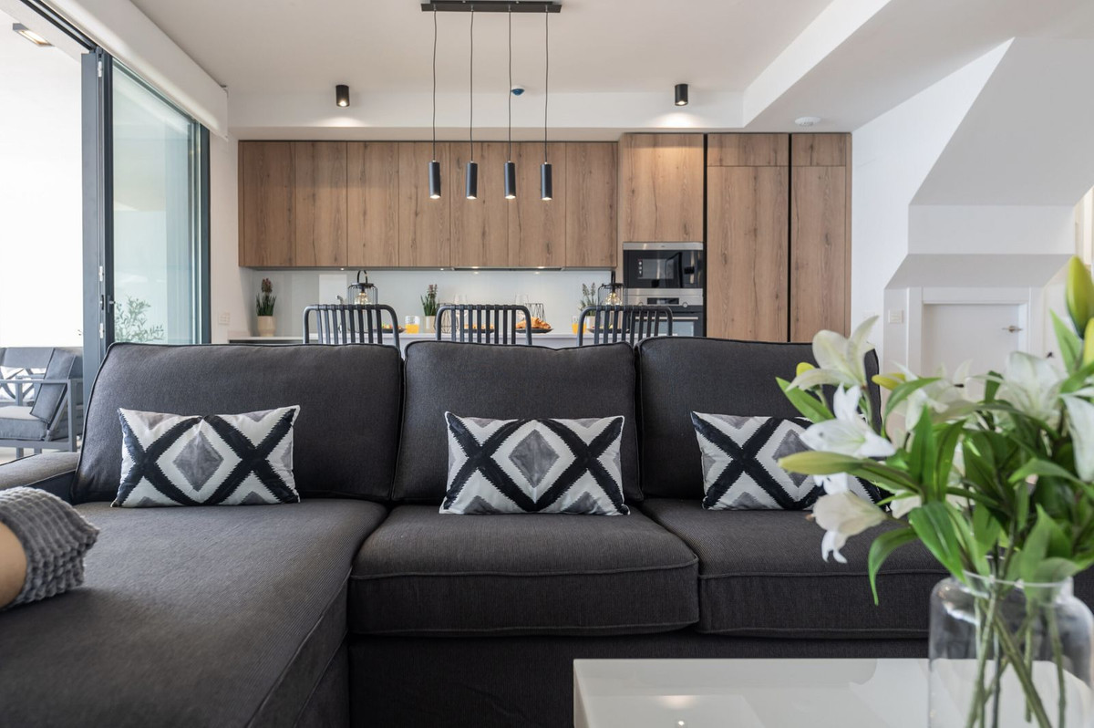 Fully equipped kitchen open to the living room, 2 terraces facing the sea.