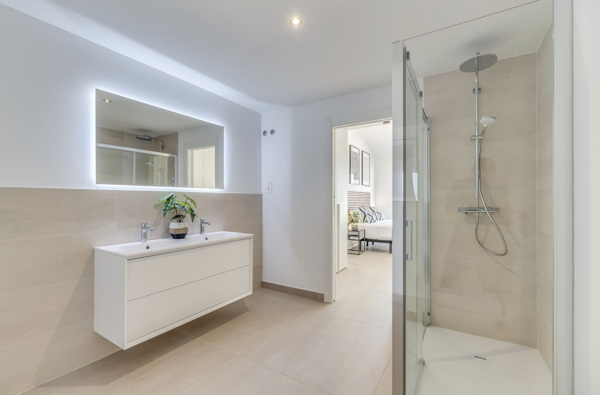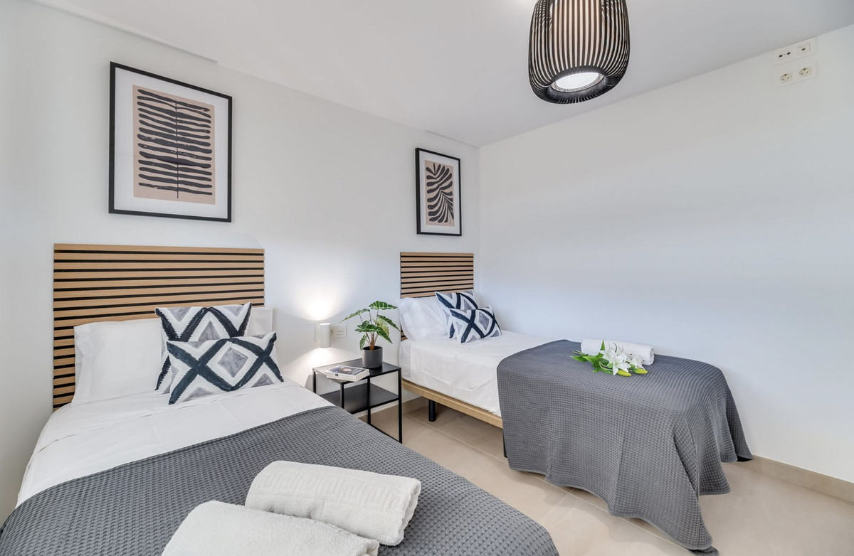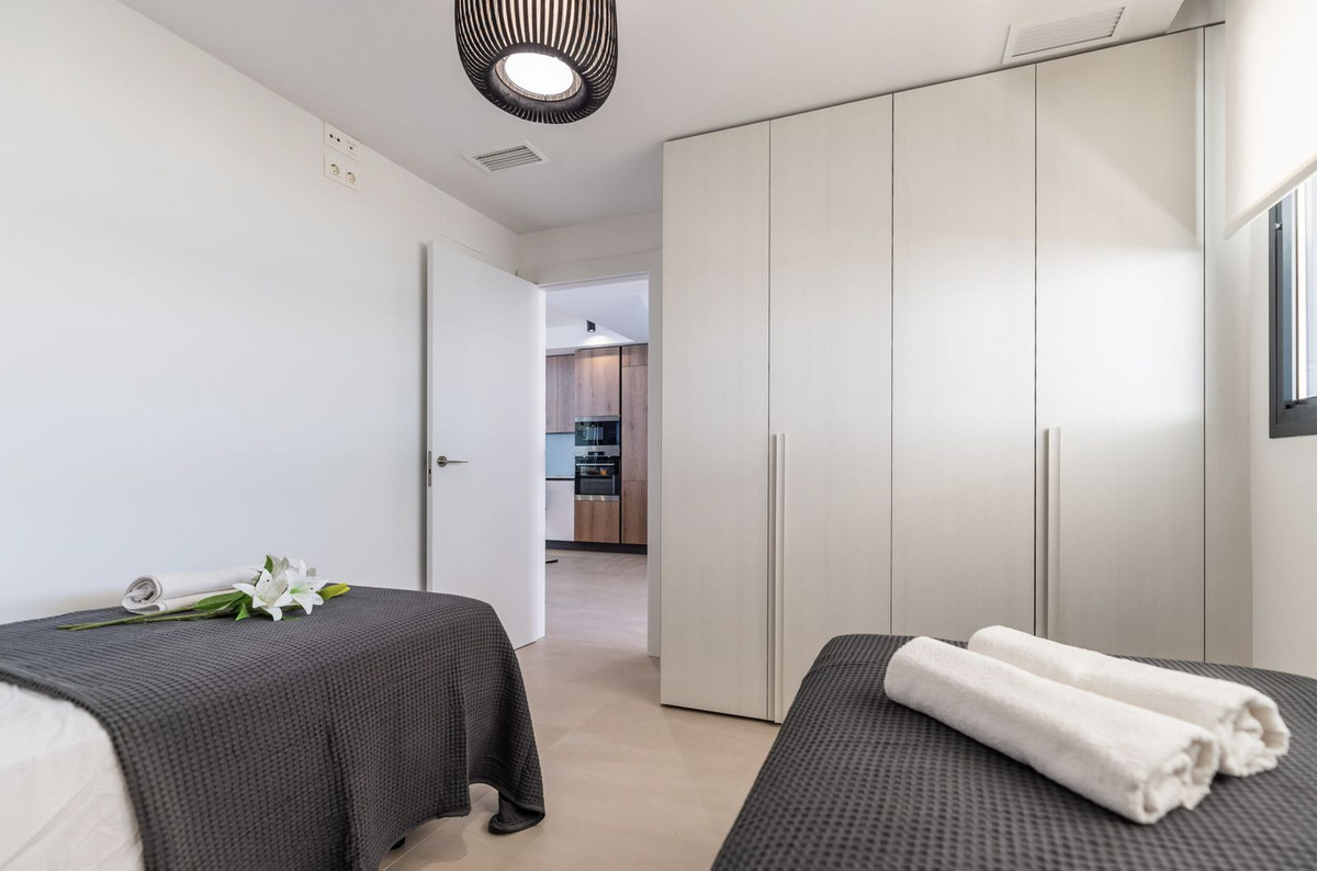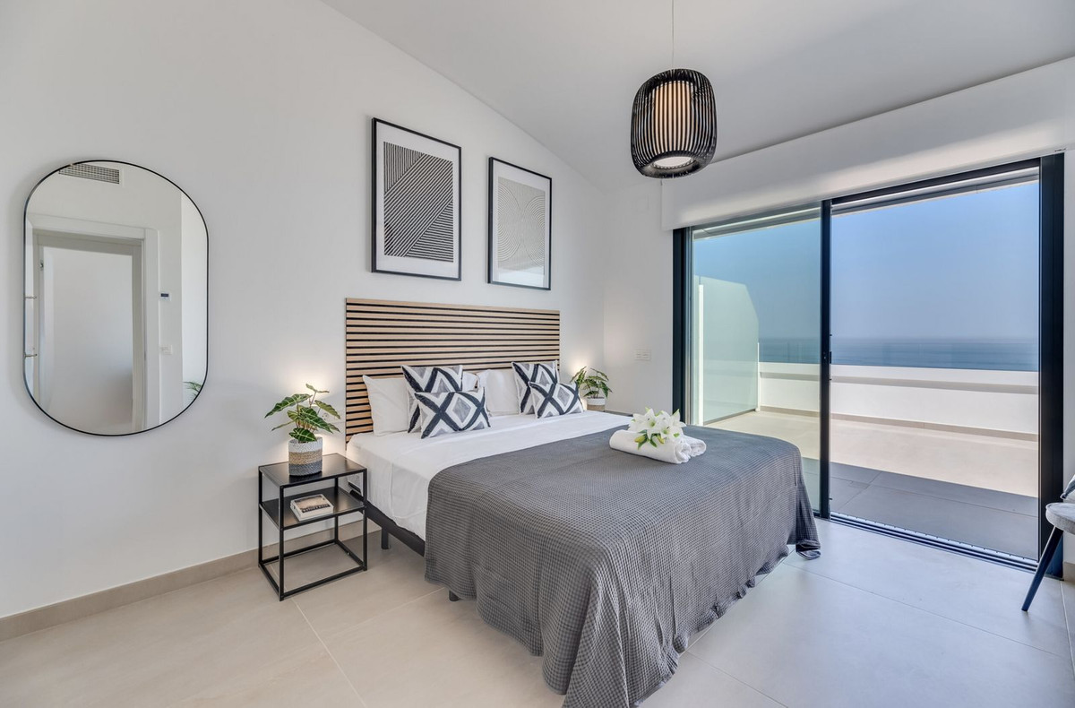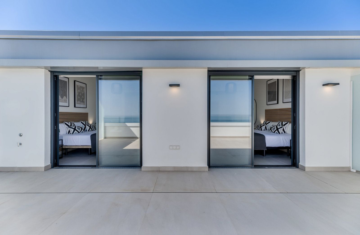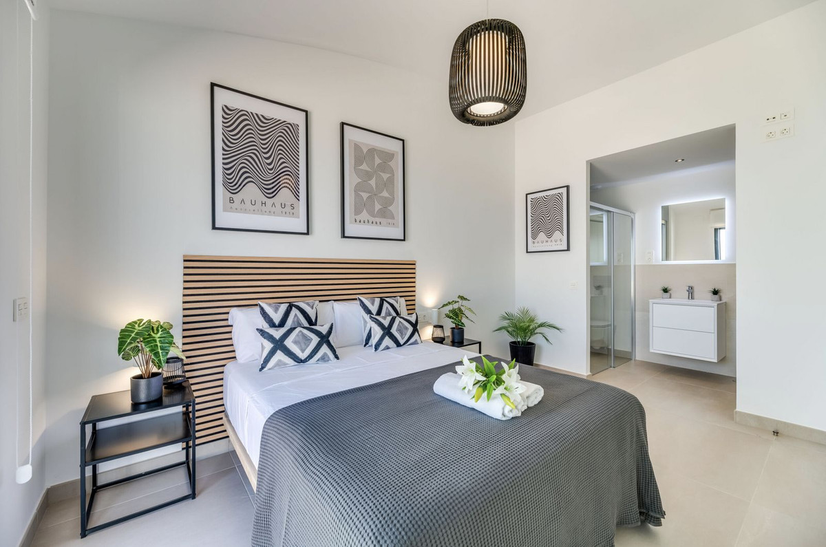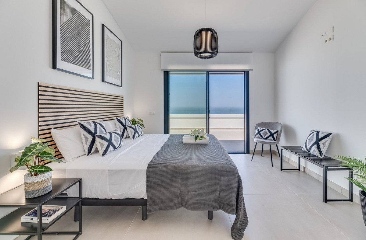 2 of the bedrooms with bathroom en suite and access to the upper terrace with sea views.